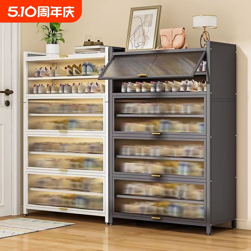 スチール製防塵靴箱、家庭用玄関多層収納キャビネット、大容量収納キャビネット、玄関用跳ね上げ式多層靴棚