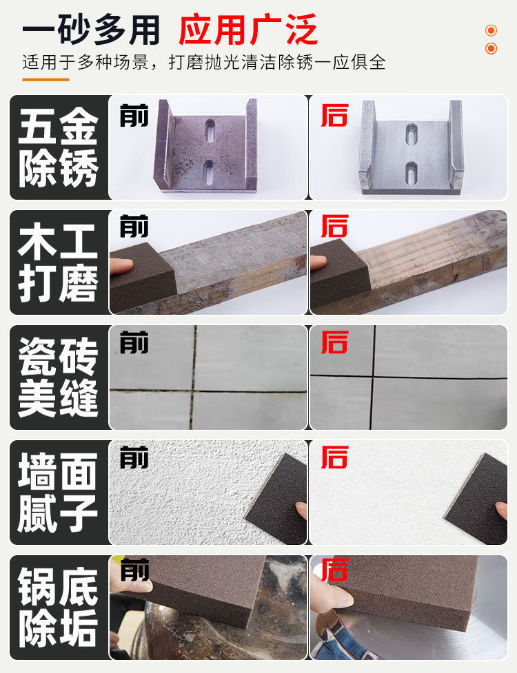 批发K牌橘红海绵砂块厚款家具打磨抛光神器美缝擦墙海绵磨块砂块