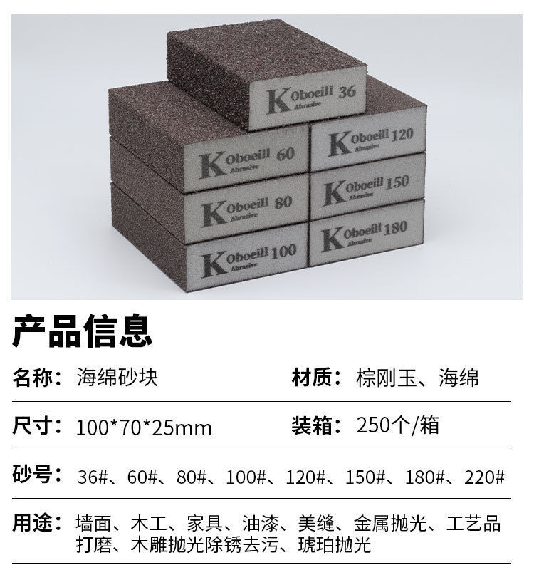 Kingdom海绵砂纸木工墙面打磨砂块美缝木门线条模型油漆家具抛光