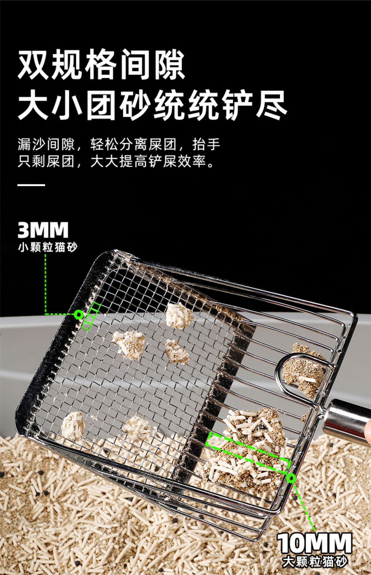猫砂スコップ、細穴うんちスコップ、大型金属ステンレス猫うんちスコップ、ベントナイト鉱石猫砂スコップ