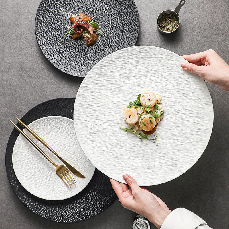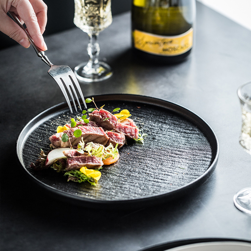 フロストブラックホワイトステーキ皿クリエイティブ洋食皿高級感セラミック料理皿洋食皿商用食器