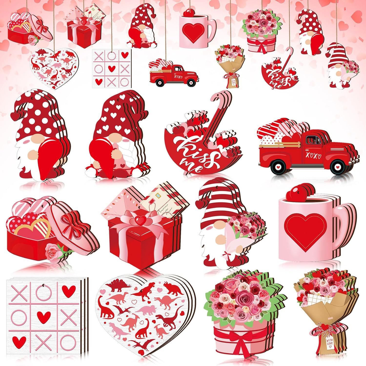 バレンタインデコレーションホーム24件、赤い木製透かし彫りハート型アクセサリー飾りひも付きトラックバレンタイン