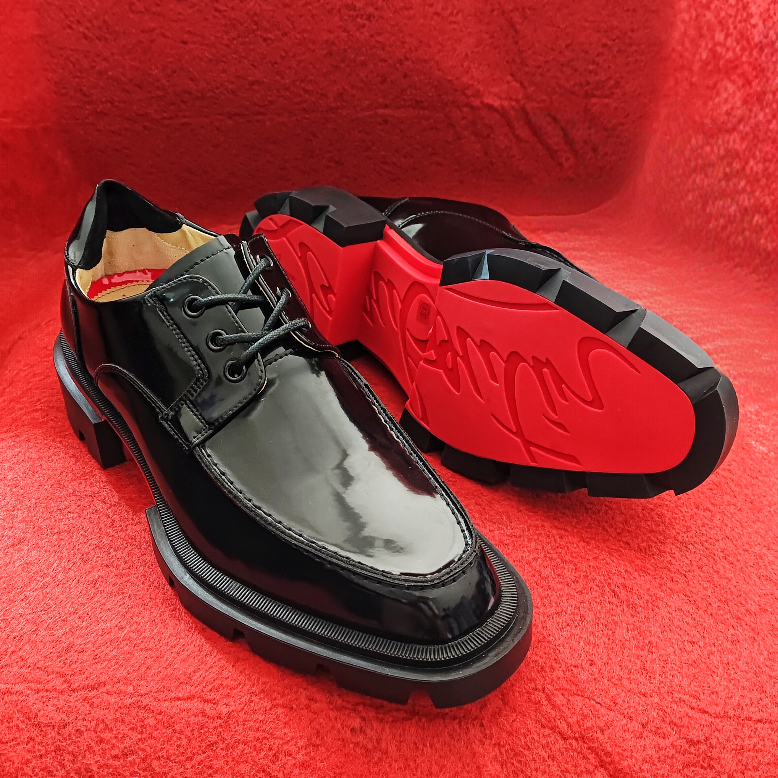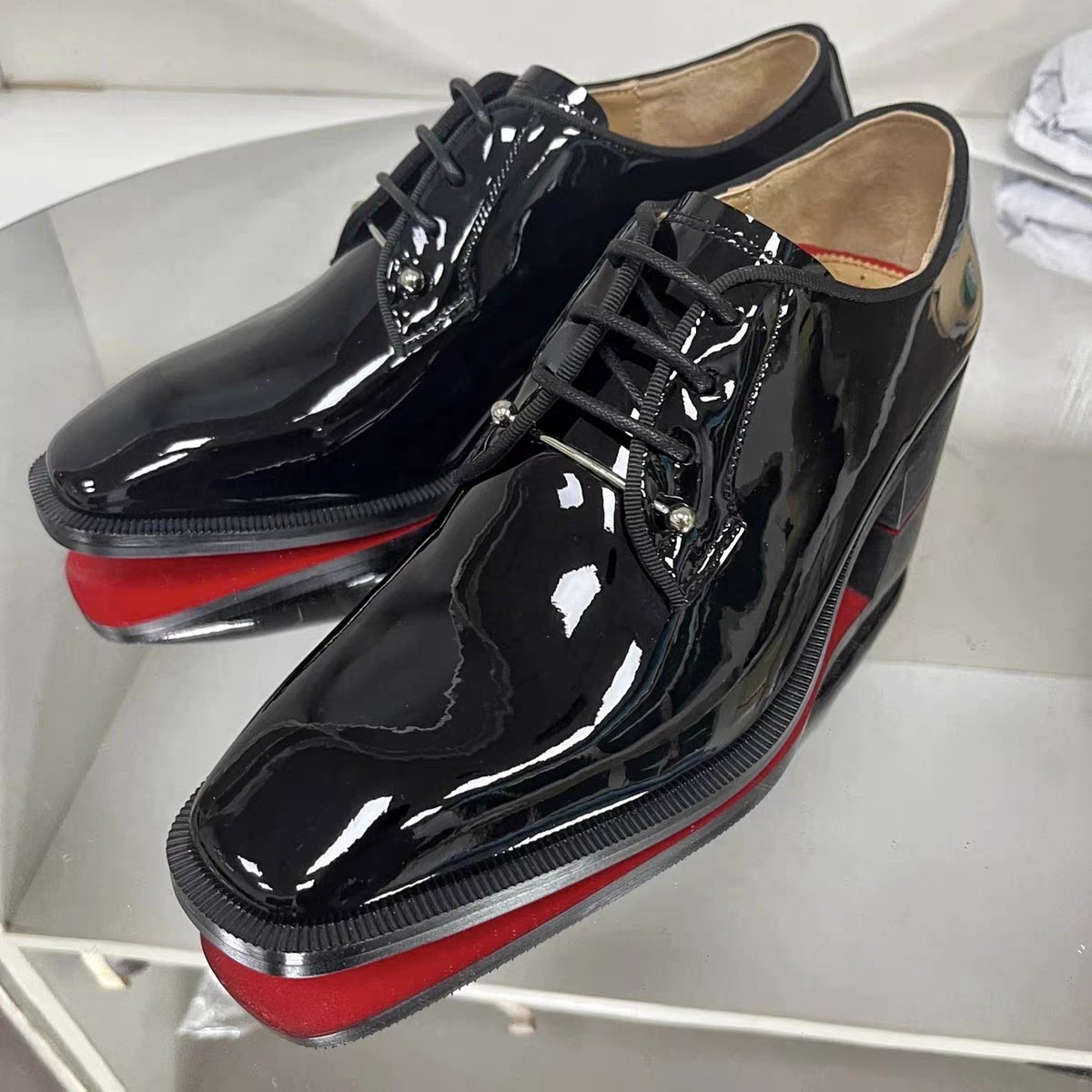 欧洲站cl同款红底鞋漆皮三接头亮面正装德比鞋婚鞋英伦皮鞋
