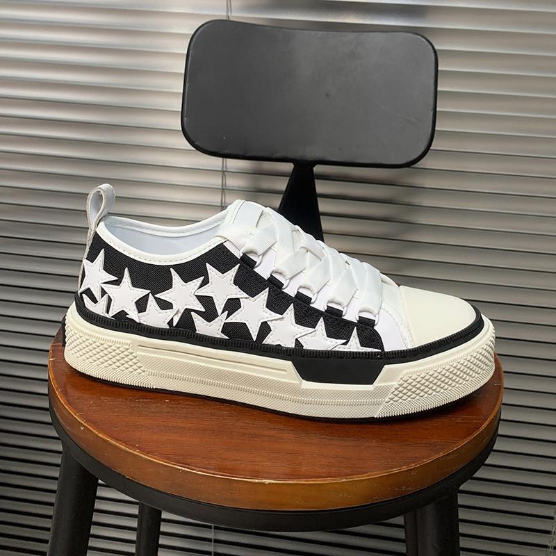 ヨーロッパとアメリカのトレンディなブランドの男性と女性の同じスタイルのボーンシューズ、対照的な五芒星プリントのキャンバス厚底カジュアルで多用途なパーソナライズされたスニーカー