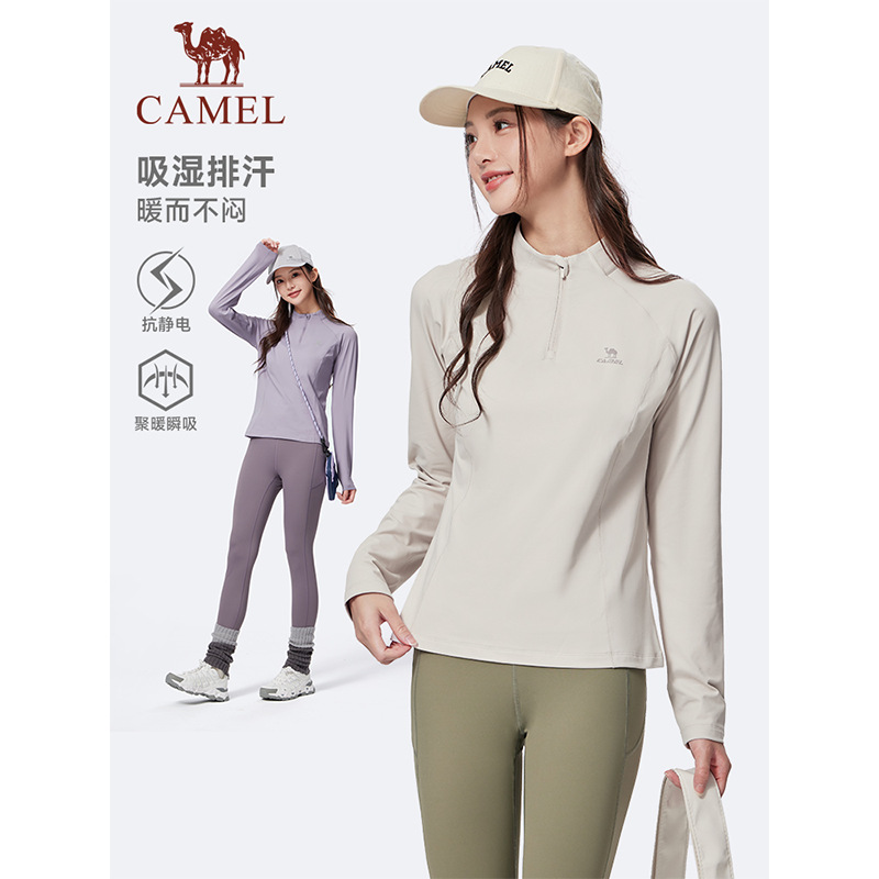 骆驼运动立领长袖T恤加绒速干衣女2025秋冬新款瑜伽服跑步上衣男