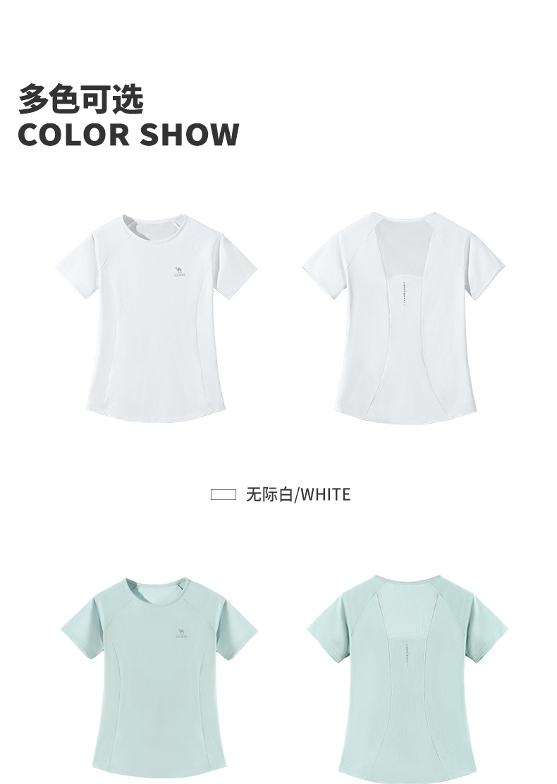 キャメルスポーツ Tシャツ 2025 新しい女性の速乾性ラウンドネックスリムランニングヨガトップテニスウェアグループ購入卸売