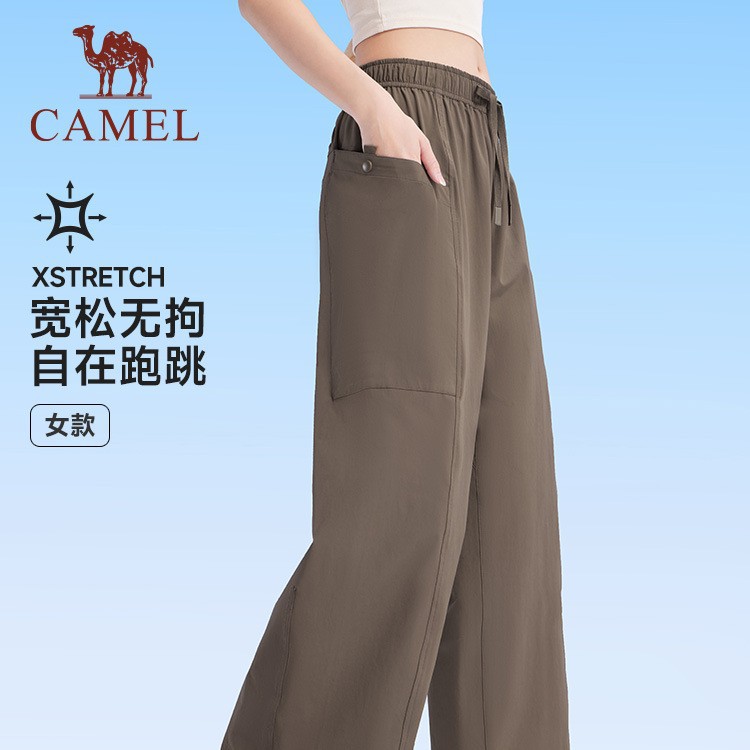 キャメル女性のワイドレッグパンツ 2025 夏の新弾性ウエスト日焼け止め速乾性通気性ドレープストレートカジュアルパンツ女性のための