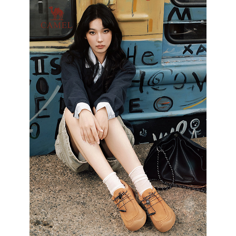 骆驼2025秋季新款舒适英伦复古风百搭通勤袋鼠鞋免系鞋带休闲鞋女