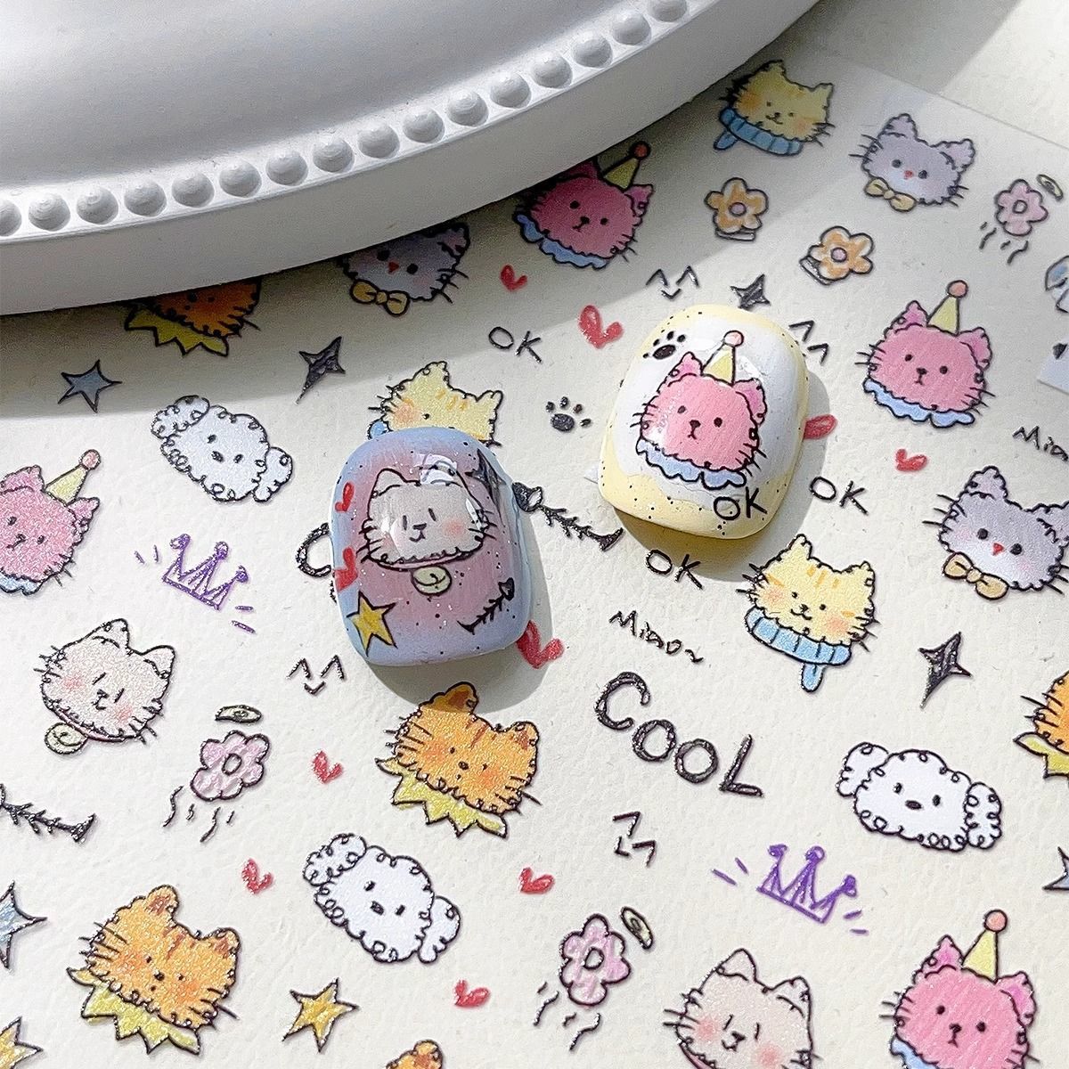 インスタイルの新しいソフトかわいいペットの犬と子猫エンボス加工立体ネイルアートステッカーかわいい漫画 ccd 携帯電話 ipad