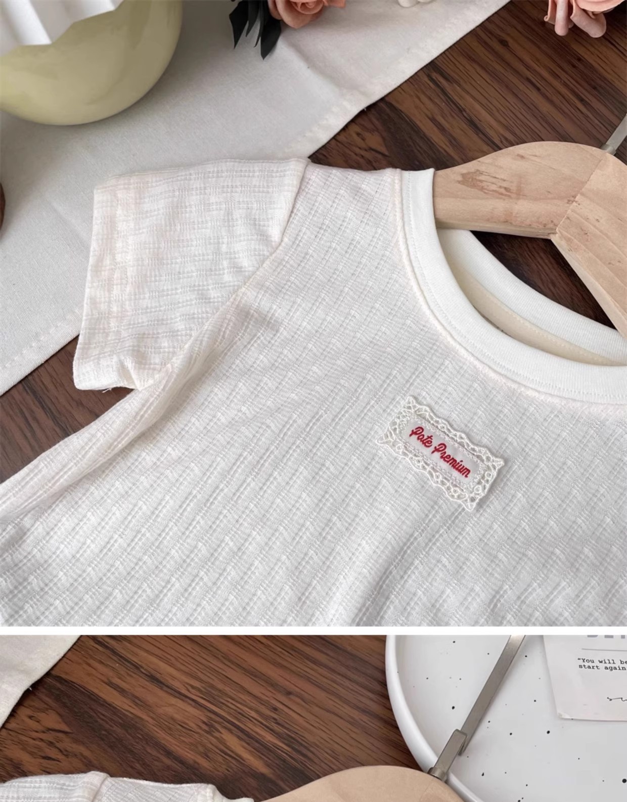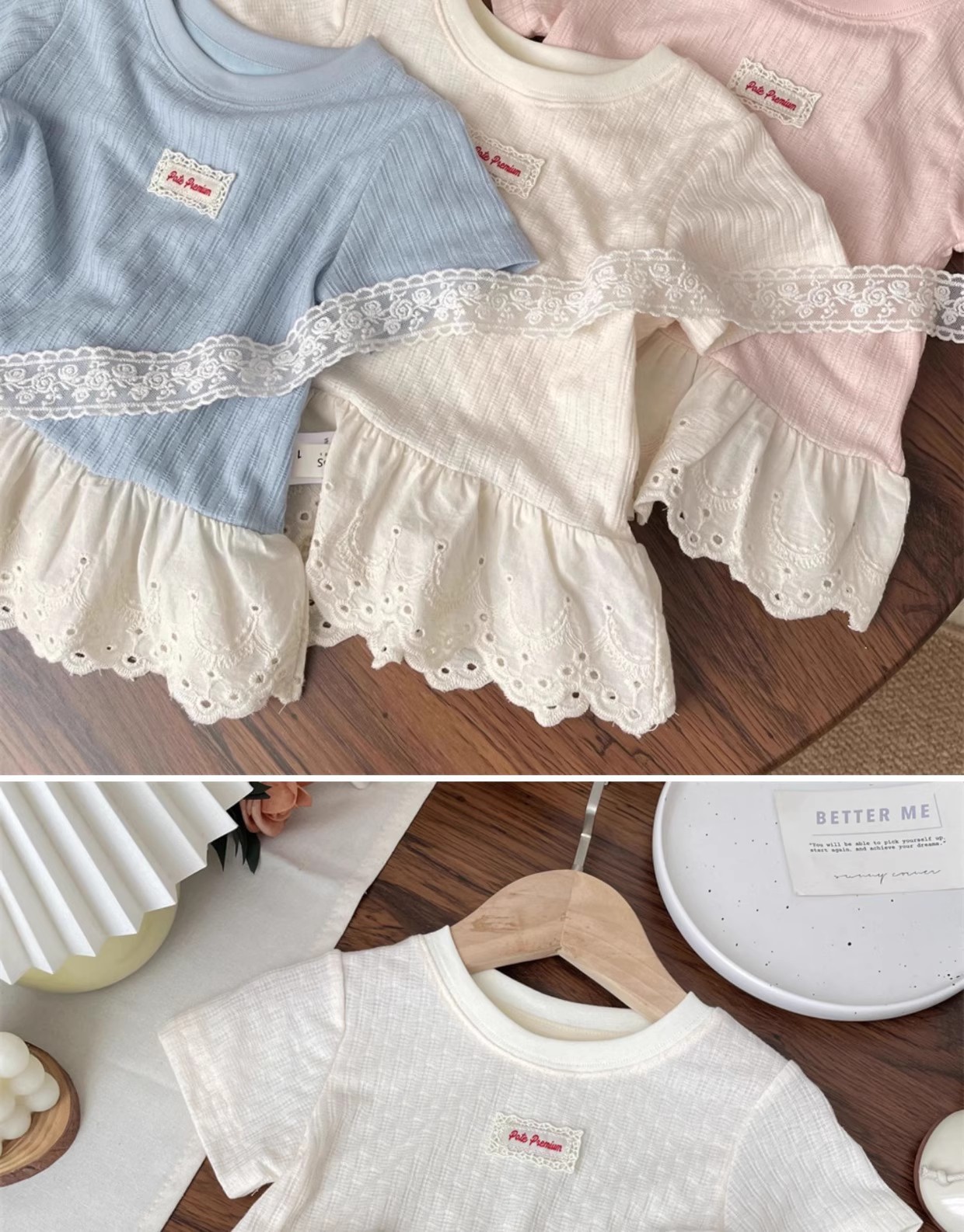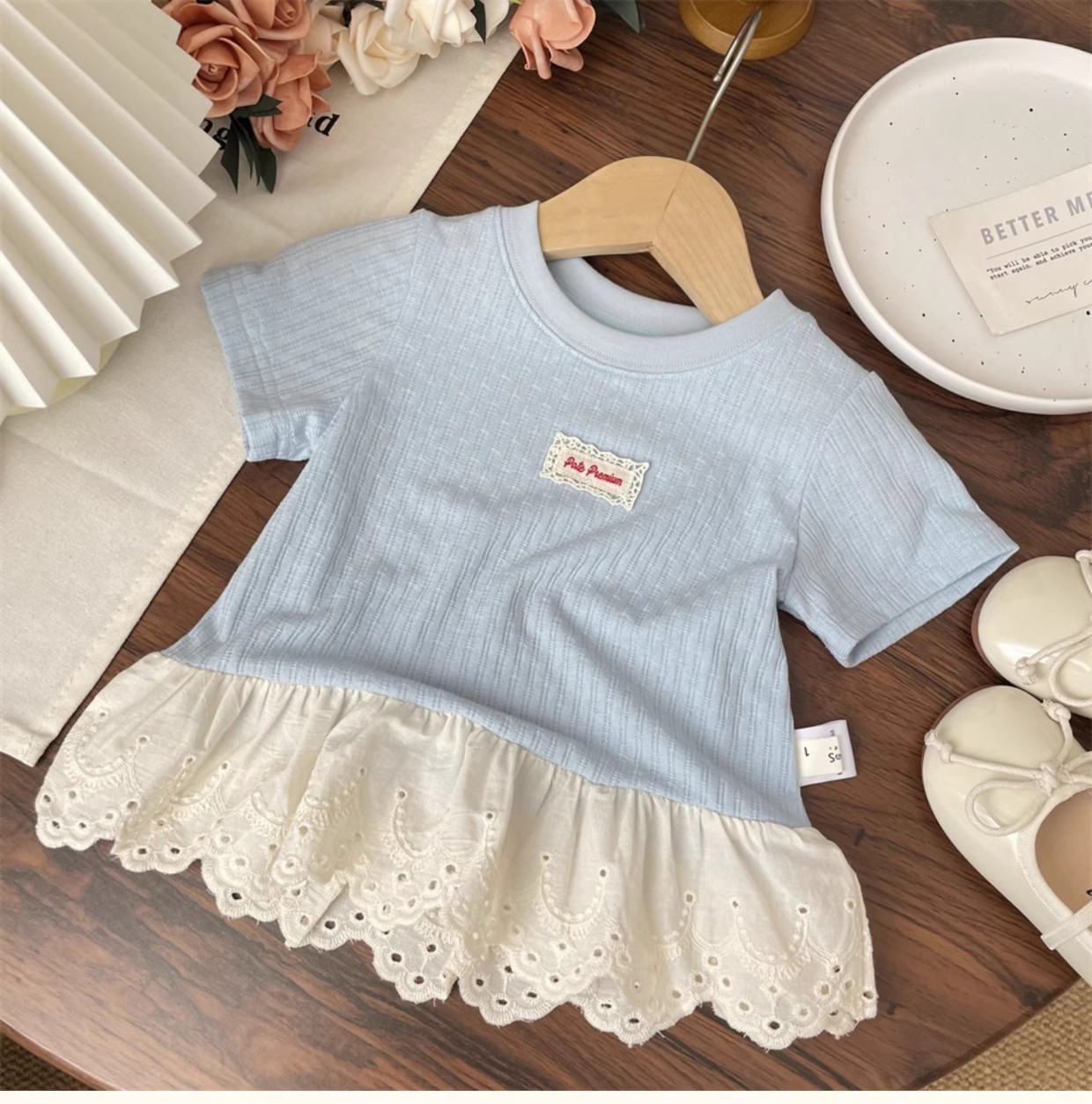 女の子 Tシャツ夏服 2025 夏新パッチレース半袖 Tシャツスカートトップボトムシャツ子供服