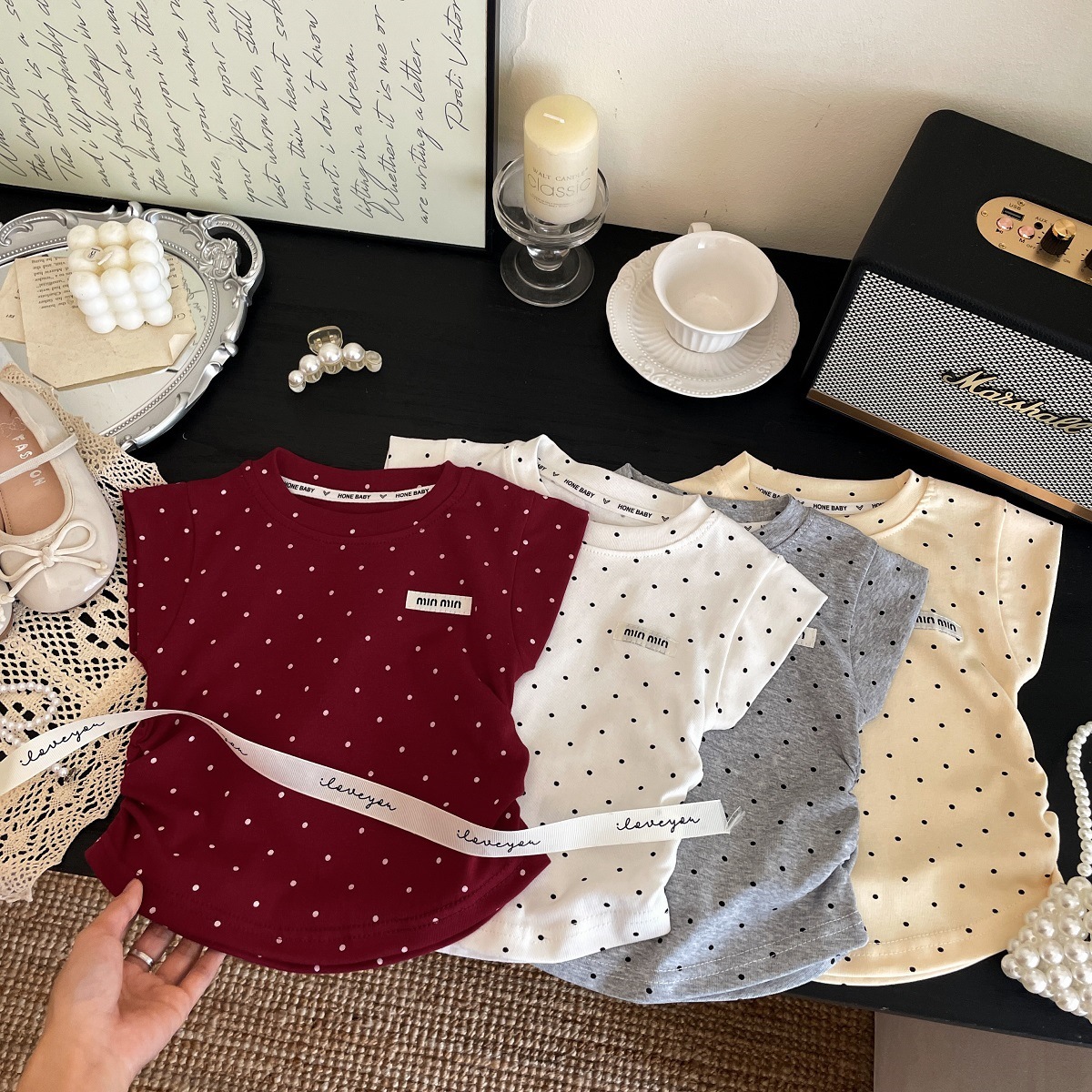 【親子モデル】新作スイートポルカドットガールズ半袖2025夏子供Tシャツ、おしゃれで万能な子供服
