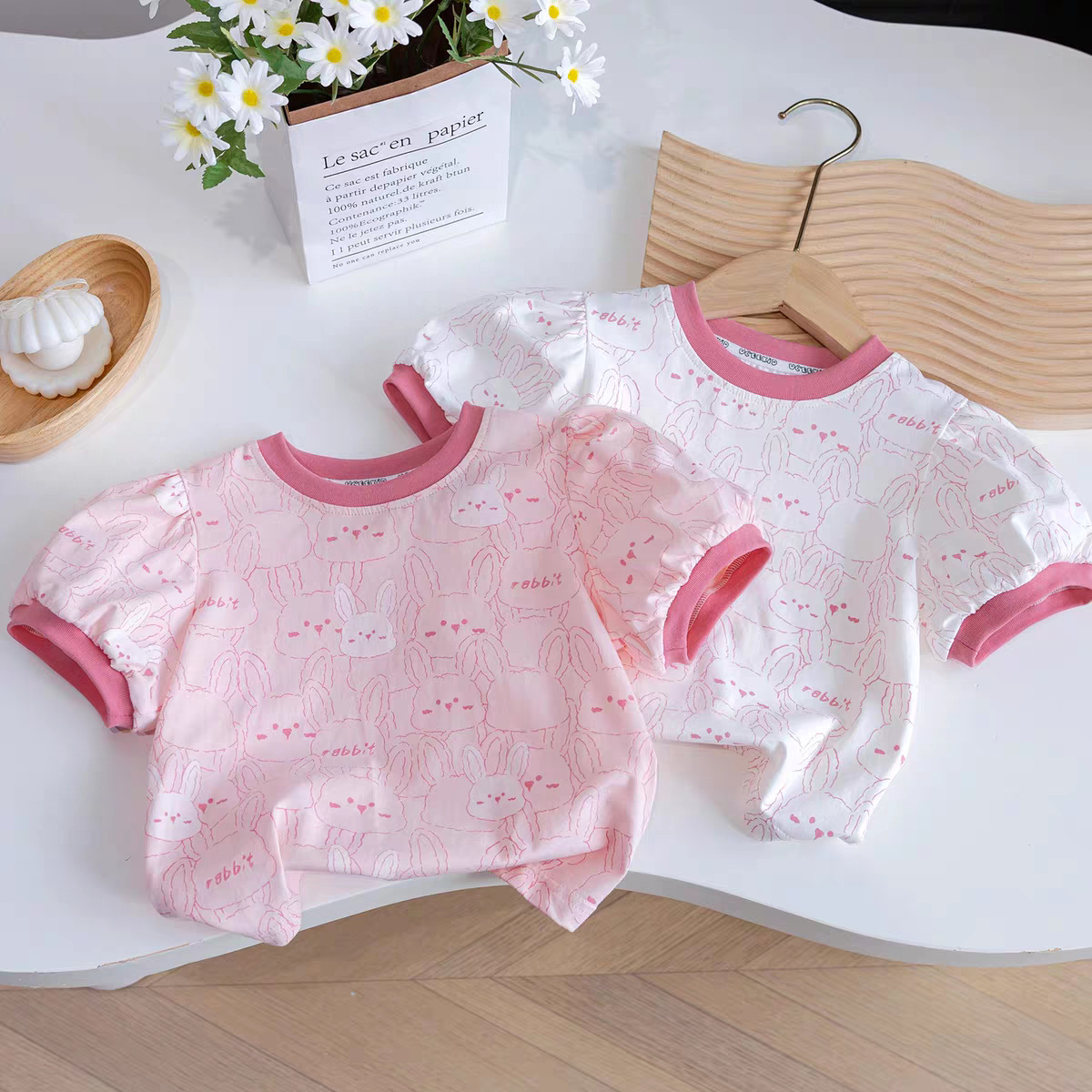 【48時間以内発送】巾着半袖女の子用ゆったりトップス漫画柄新作刺繍入り夏用可愛いTシャツ