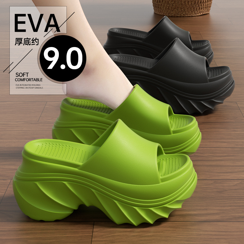 夏の新型EVA厚い底5cmの人の字のスリッパの女性の外は高くなって柔らかい底の耐摩耗性の足のサンダルinsの潮を挟みます。