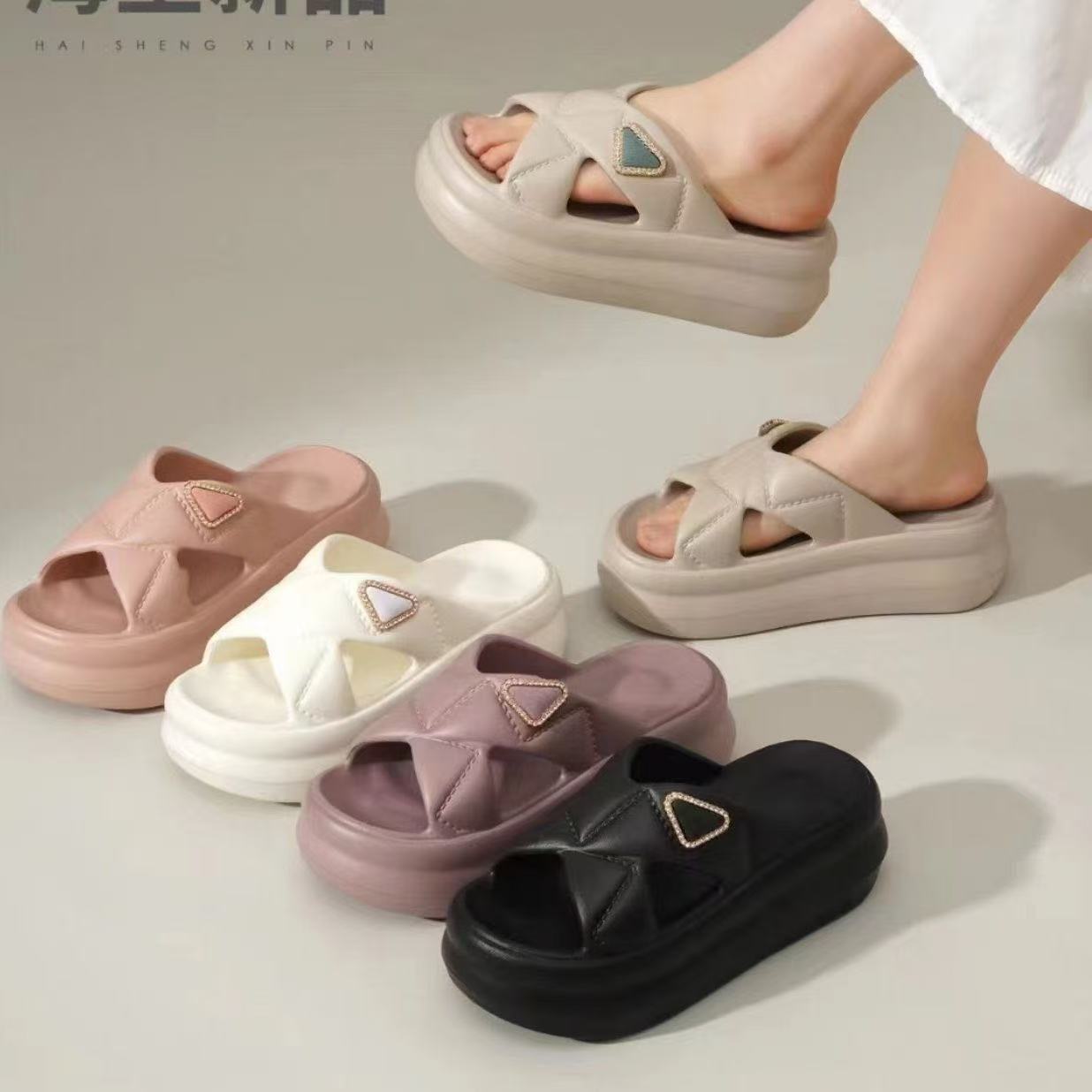 女性用スリッパ、厚底、新しいファッション、厚底スリッパ、ビーチ屋内ソフトソール滑り止め防臭サンダル
