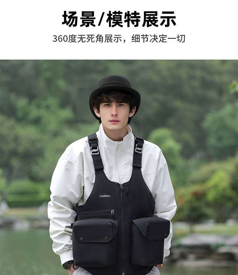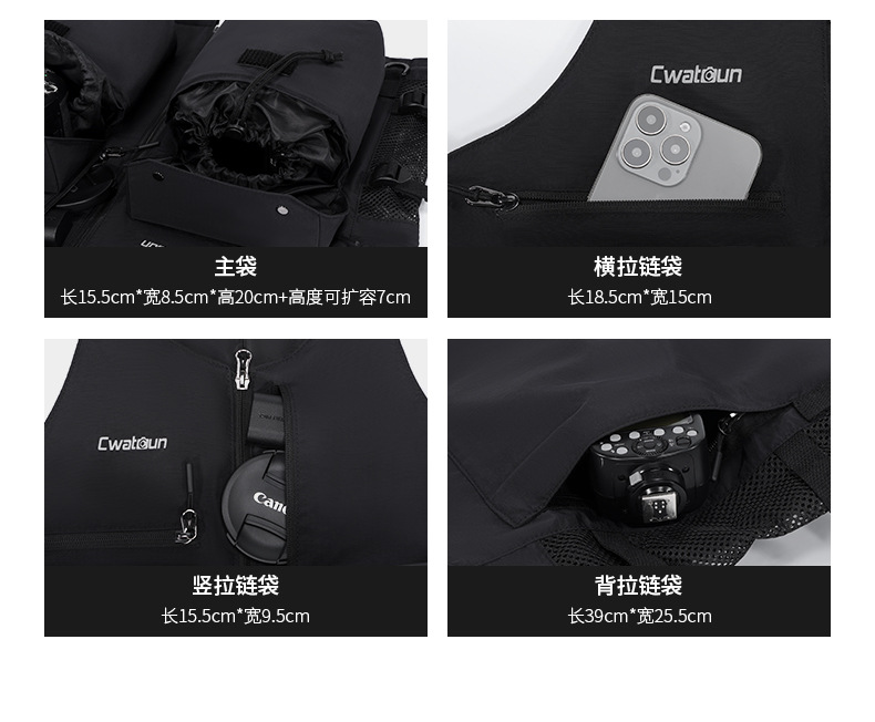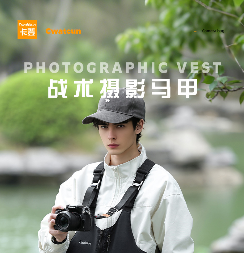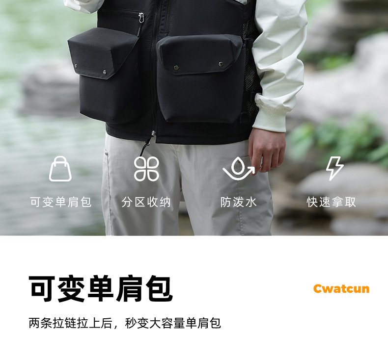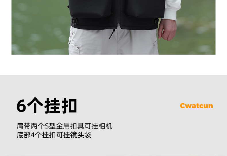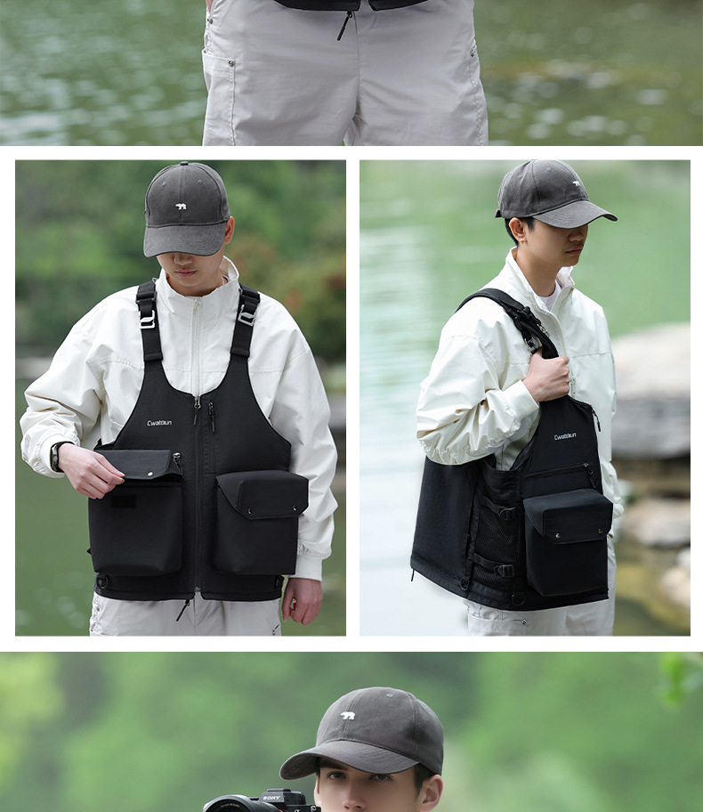 Cwatcun 香港多機能写真撮影ベスト屋外軽量で快適なカメラバッグ収納可能なショルダーバッグウエストバッグ