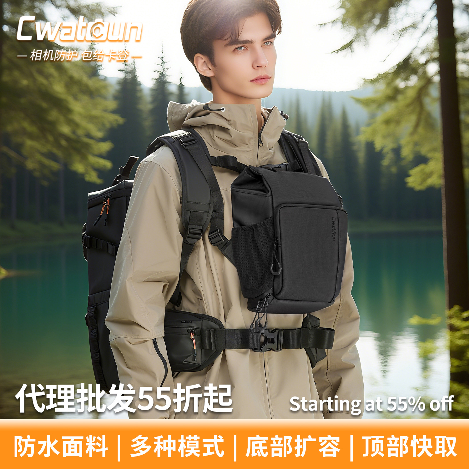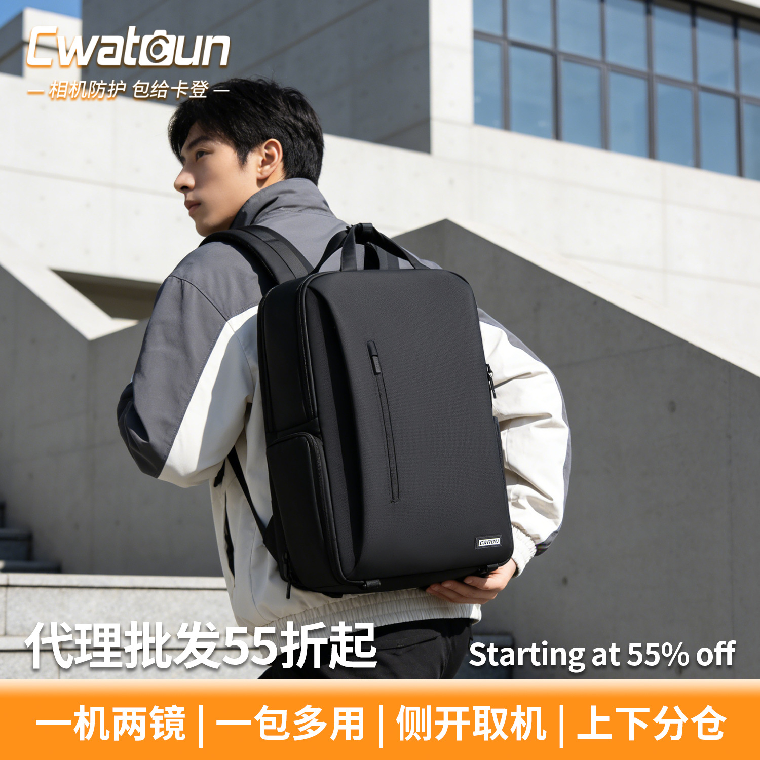 Cwatcun 香港製カジュアルカメラバックパック 日常通勤用リュックサック 1台5レンズ対応 防水カメラバッグ