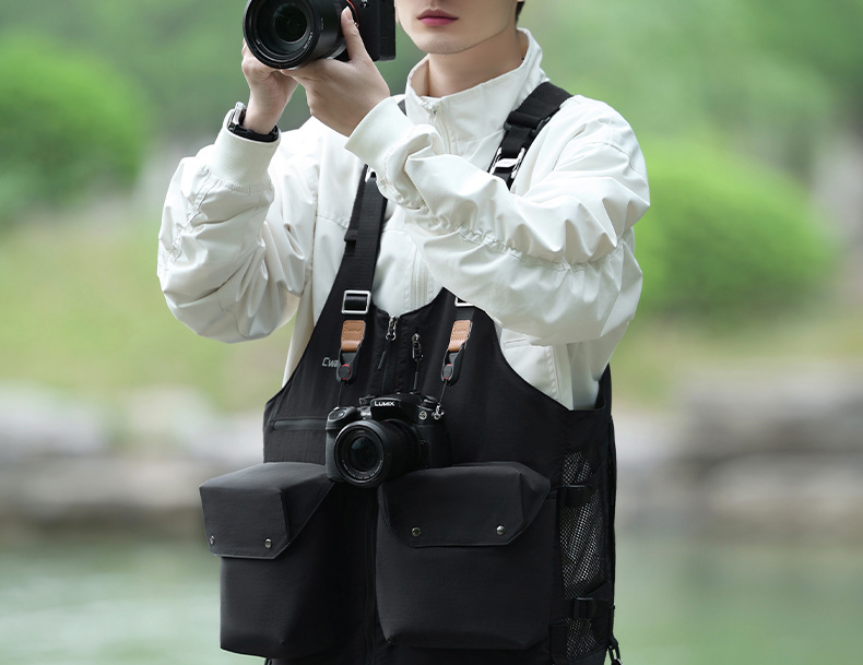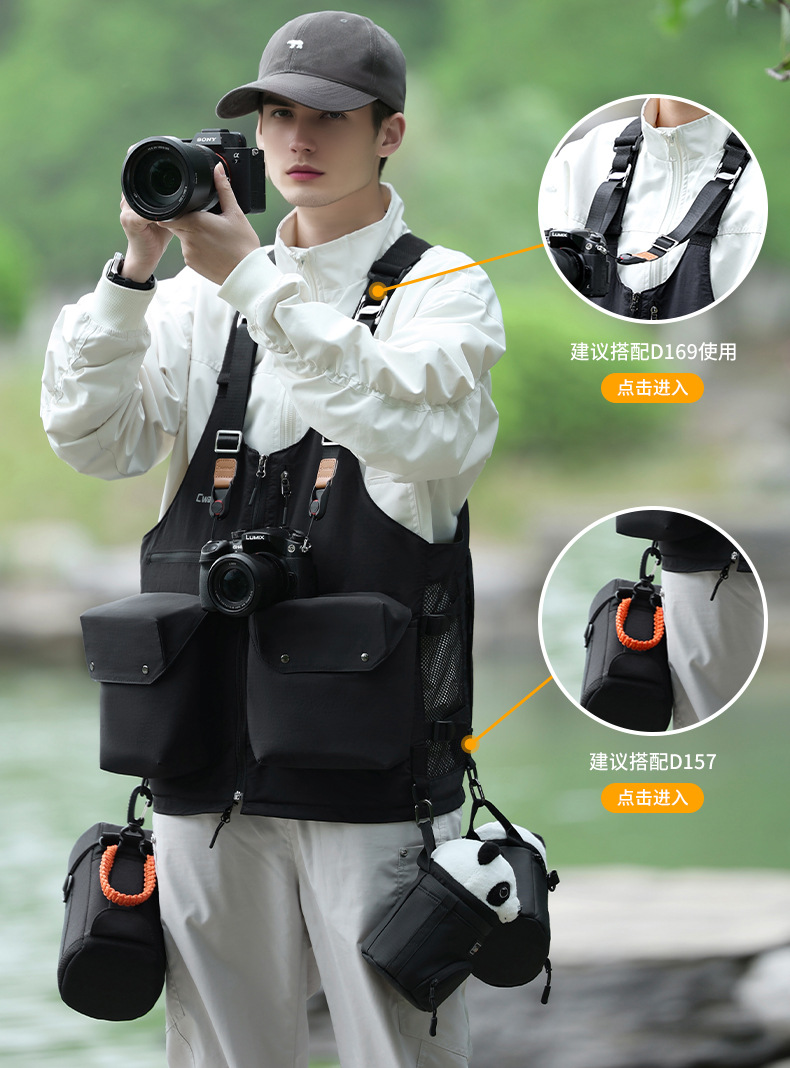 D192 写真ベスト (カメラ 2 台、レンズ 2 枚 + 可変ショルダーバッグ + クイックアクセス + 軽量で快適)
