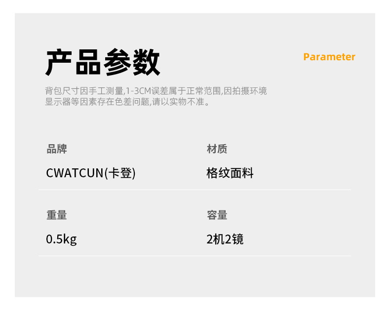 Cwatcun 香港一眼レフカメラバッグクロスボーダー人気ショルダーデジタル写真バッグ屋外ポリエステルカメラバックパック