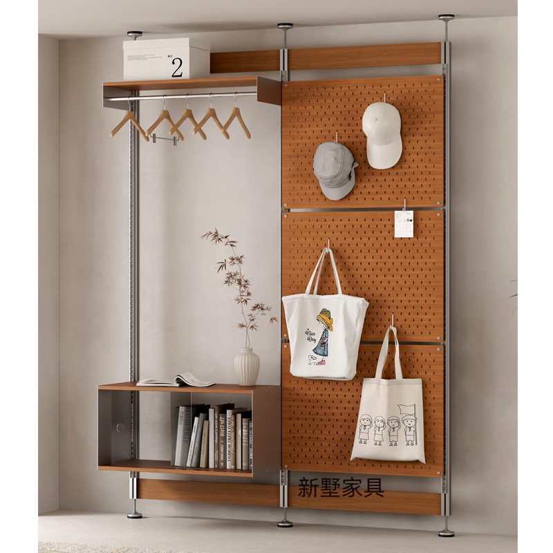 顶天立地铝型材分层置物架桦木洞洞板中古自由组合家用多层收纳架