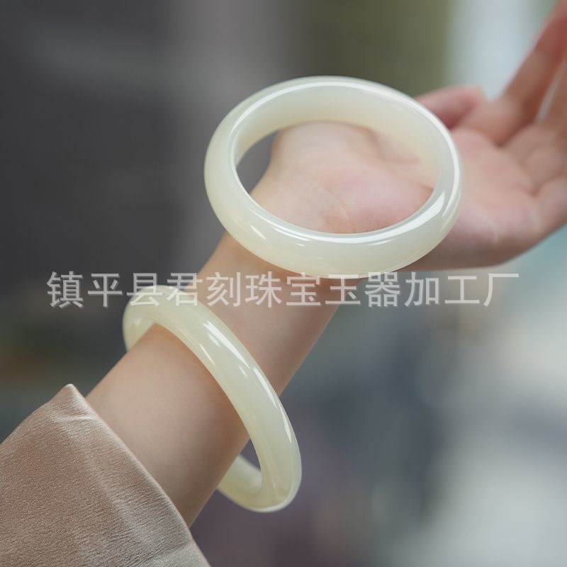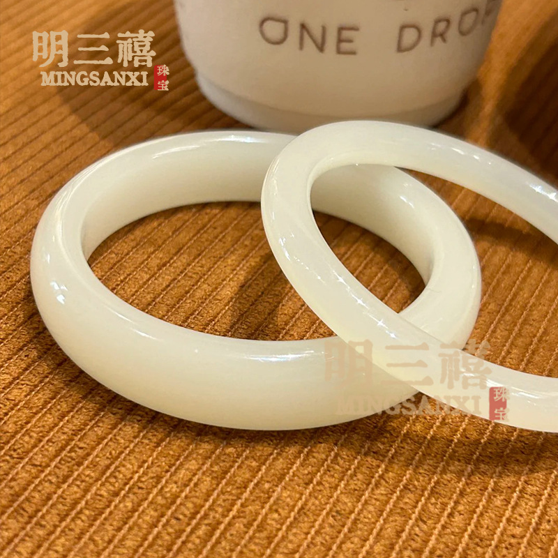 【宝贝名称】外蒙料青白玉扁条手镯