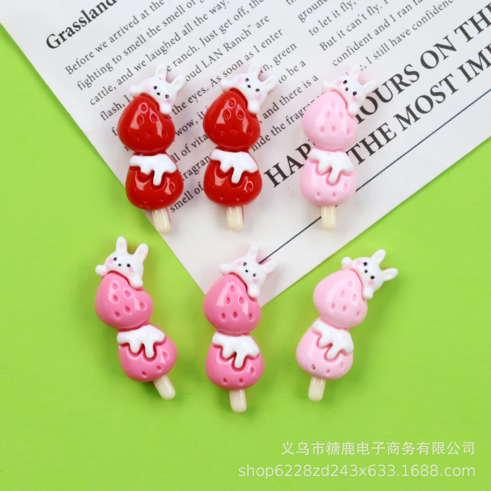 明るい顔のイチゴのウサギは串を刺して食べて樹脂の部品を遊びます。