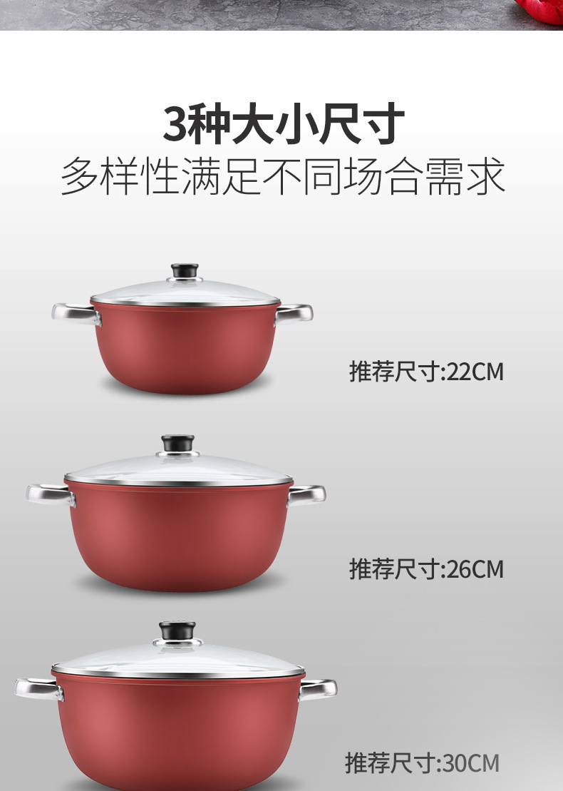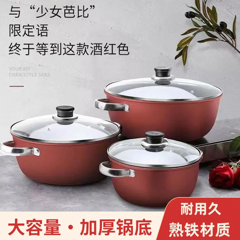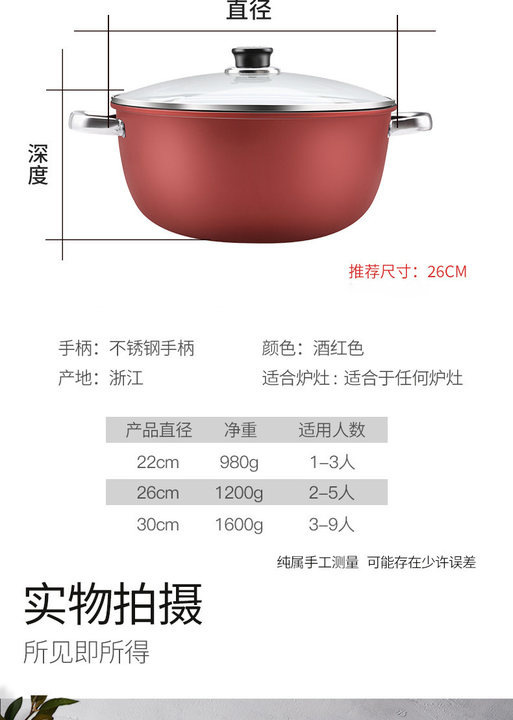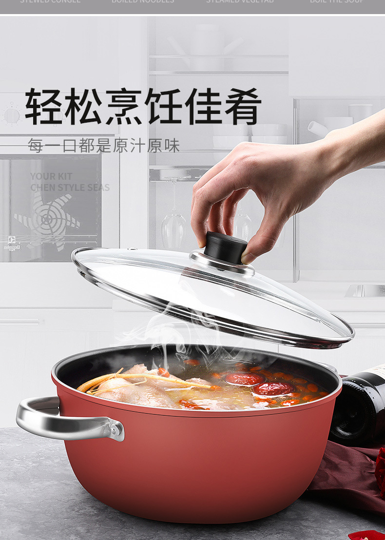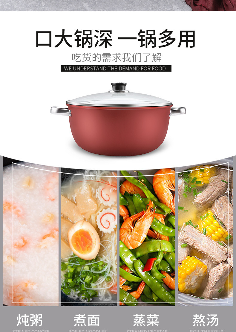 新しい赤い麦飯石スープ鍋家庭用大容量シチュー鍋通用かまど煮込み鍋多機能蒸煮鍋