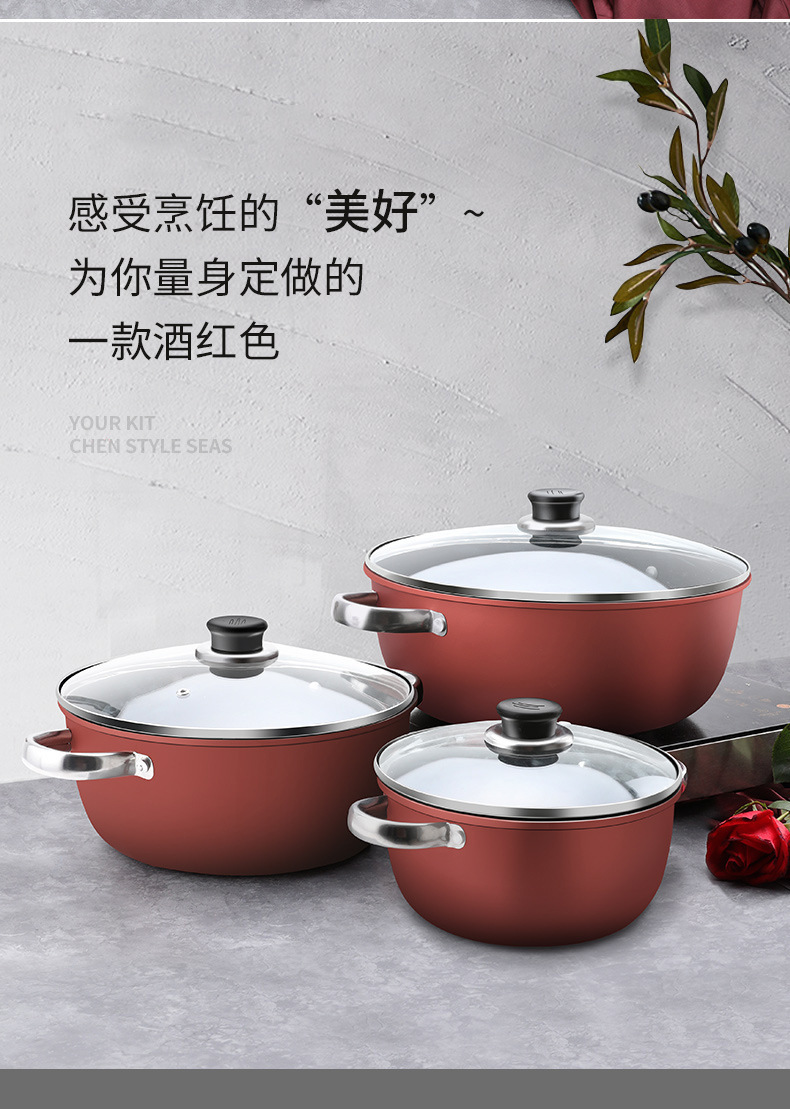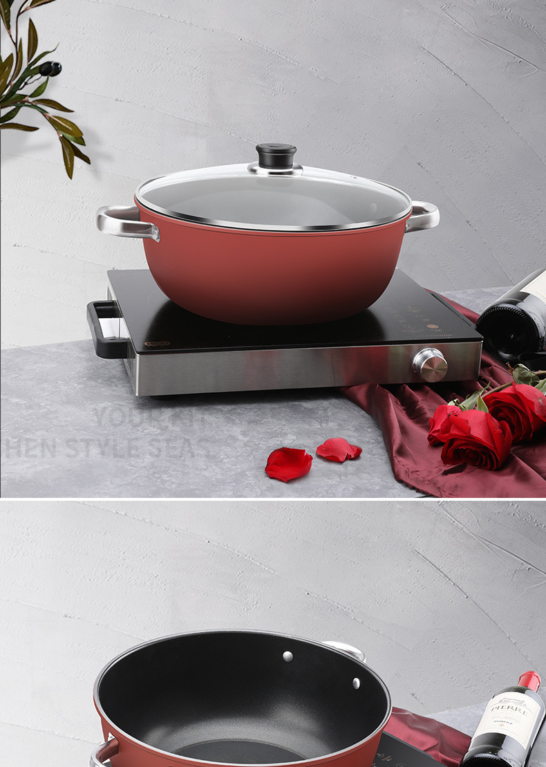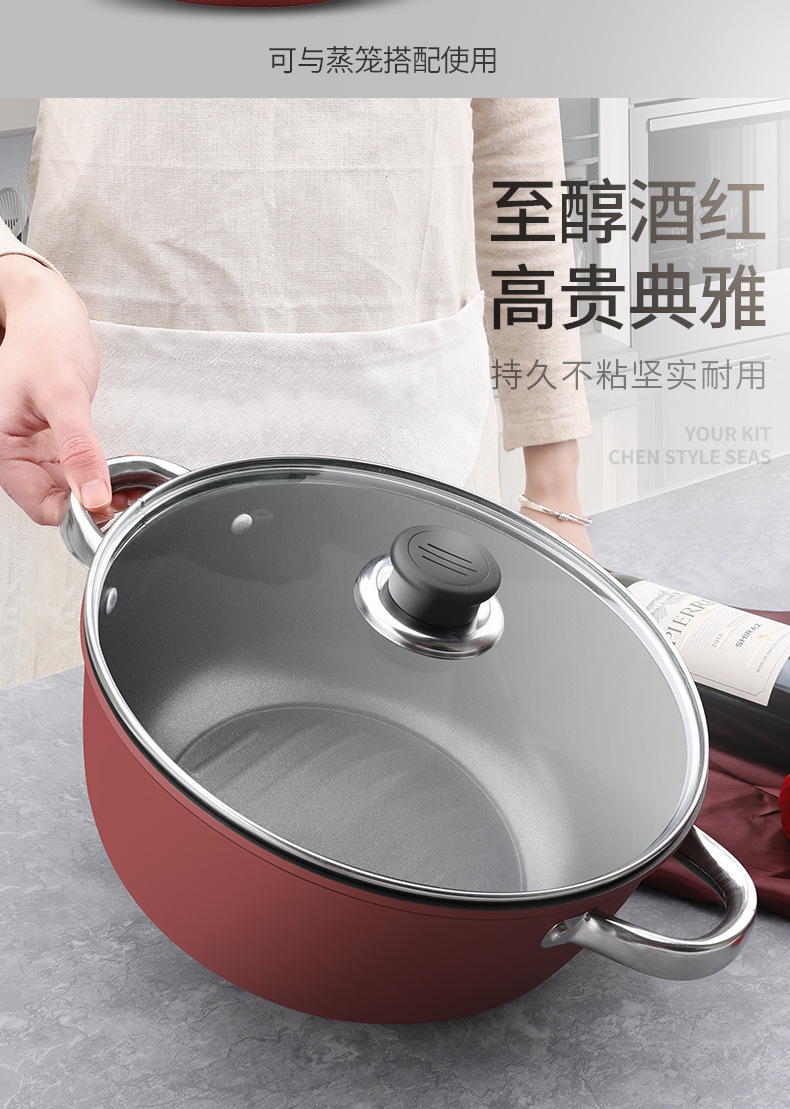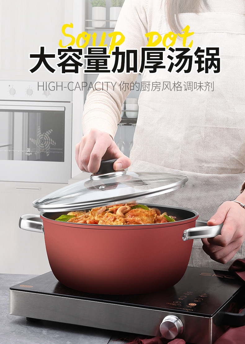 新しい赤い麦飯石スープ鍋家庭用大容量シチュー鍋通用かまど煮込み鍋多機能蒸煮鍋