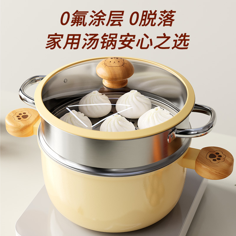 新款汤锅奶锅家用蒸锅双耳不粘锅炖锅燃电磁炉通用蒸煮加厚煲汤