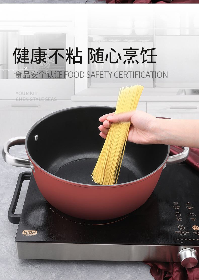 新しい麦飯石スープポットノンスティックポット家庭用麺スープ大容量両耳ポット電磁調理器ガスストーブユニバーサル