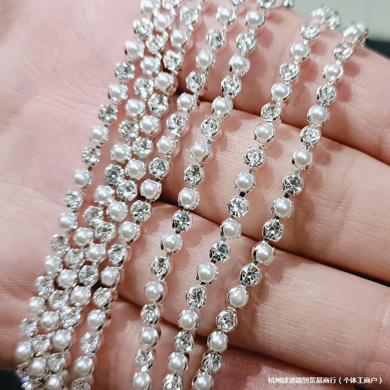 ラウンド爪ラインストーンチェーン手縫いダイヤモンドチェーン diy 高密度抗引っ掛かり襟チェーンアクセサリー女性のパールチェーンアクセサリー