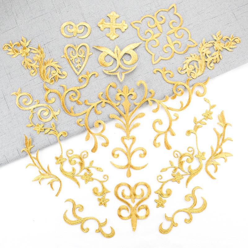 金と銀の模様の刺繍布ステッカー、古代衣装、祥雲、オペラ、さまざまなスタイルの刺繍装飾パッチステッカー、DIYアクセサリー、ホットフラワー
