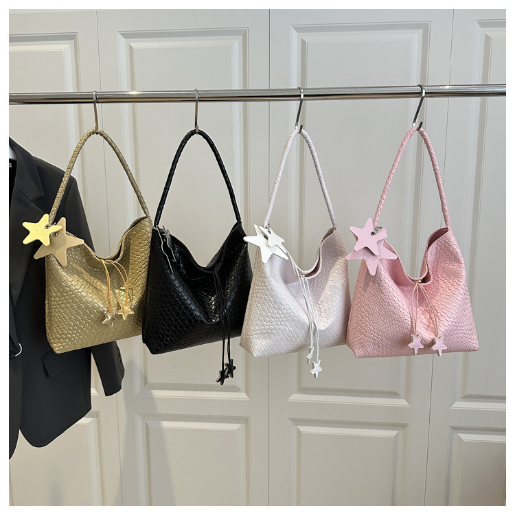 質感編み紋2025春新作シンプルデザイン大容量カジュアル清新純色シングル肩脇下包女