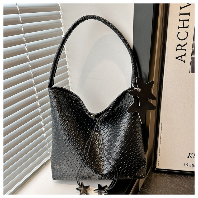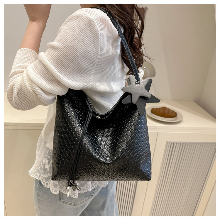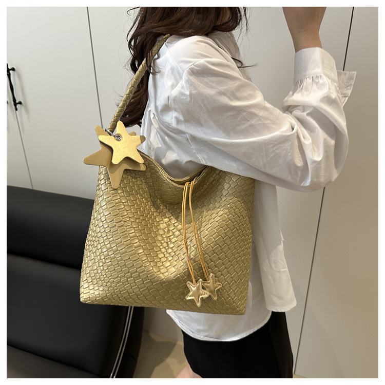 2025爆発超火編みバッグ女性式新型高級感シングル肩脇下バッグ大容量通勤トートバッグ