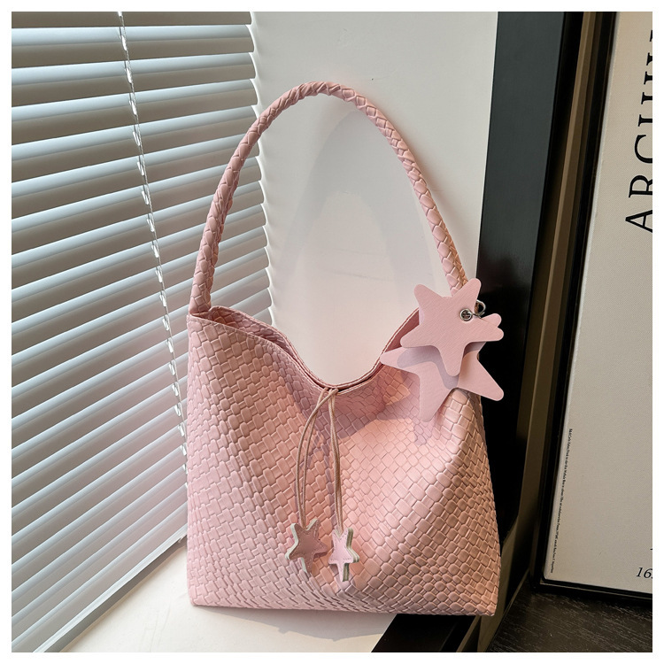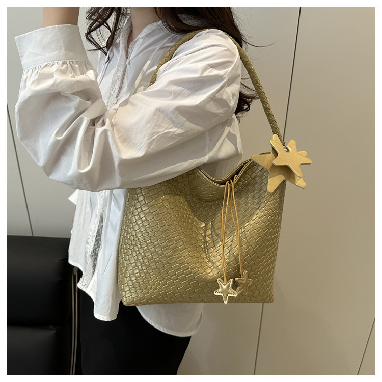 2025 織バッグ女性の新しい質感ショルダー脇の下バッグ大容量通勤ポータブルファッショントートバッグ