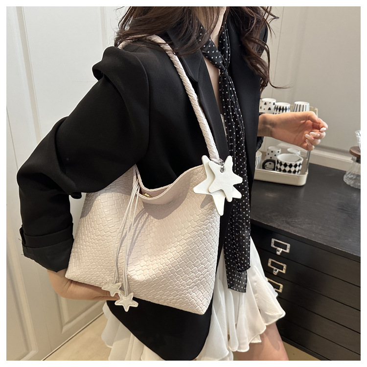 星掛け編みバッグトートバッグ大容量百合カジュアルインスタシンプルシングルショルダーバッグ