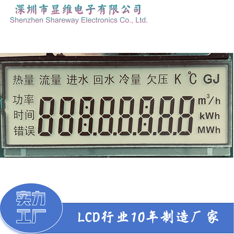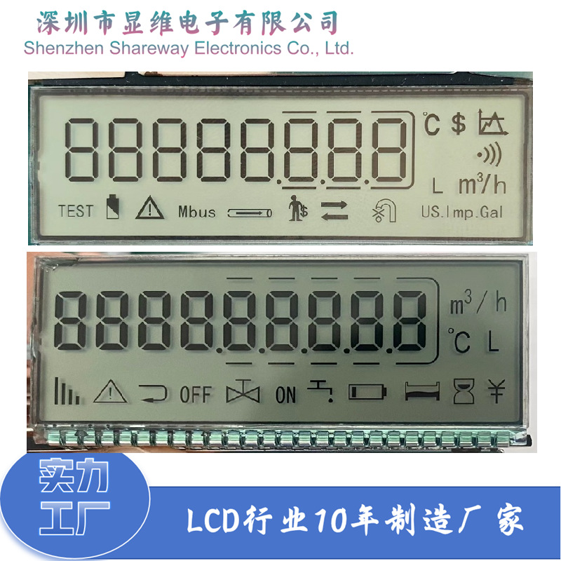 水道、電気、ガス、熱計表示画面カスタマイズセグメントコードLCD表示画面直接表示HTN反射