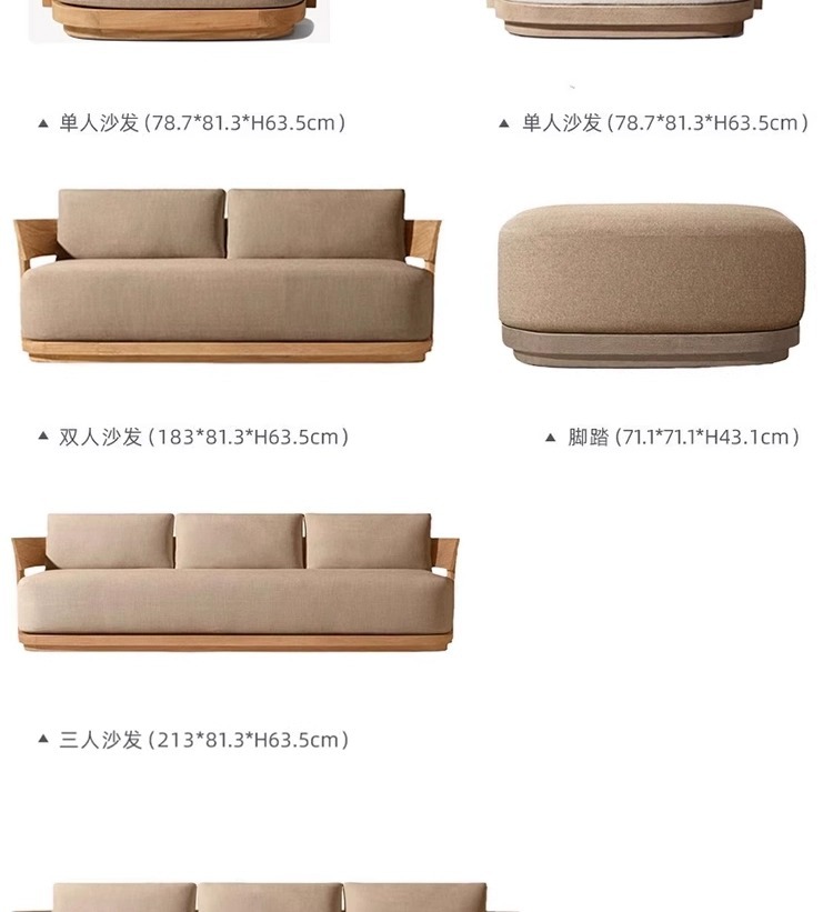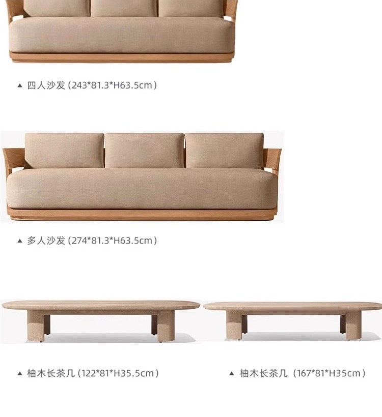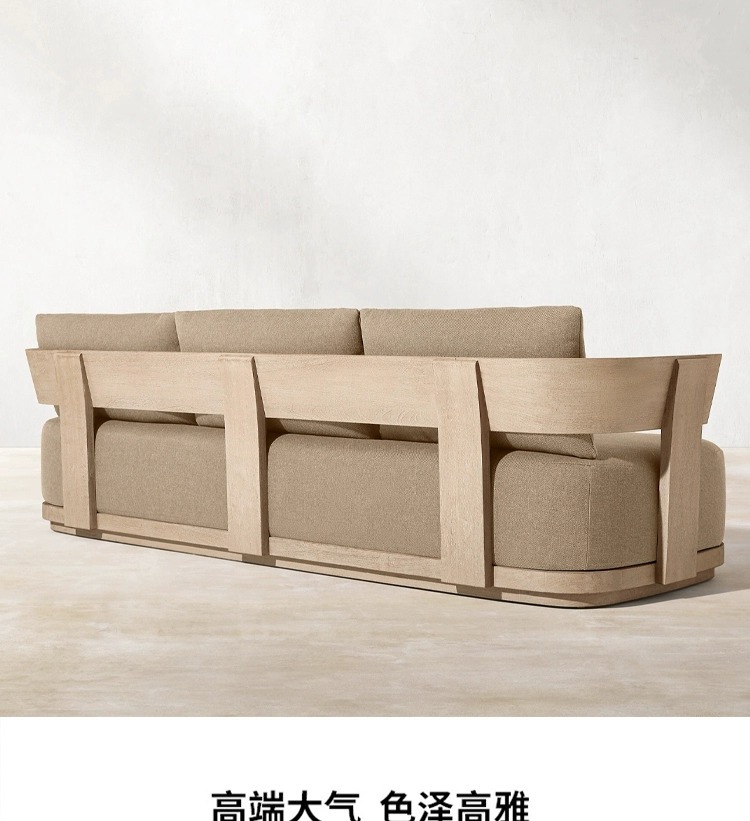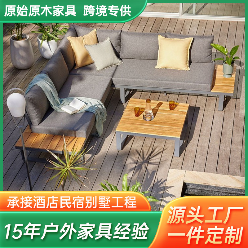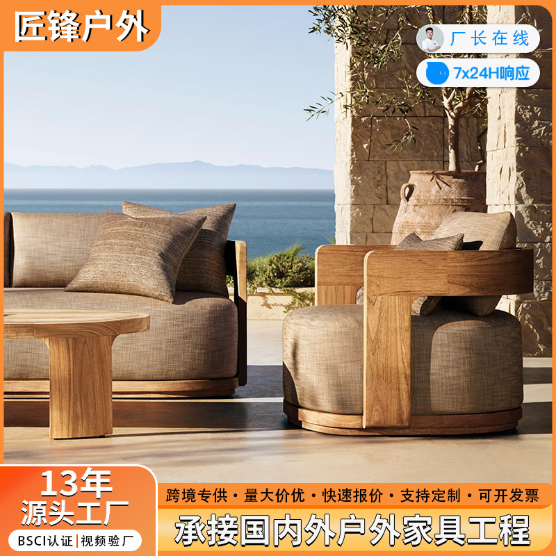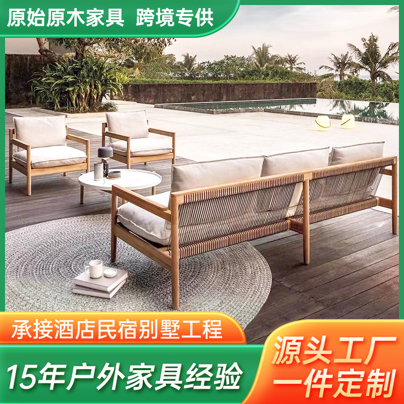 屋外チークソファ組み合わせ中庭ヴィラホテル屋外屋外防水日焼け止め無垢材レジャーソファ家具