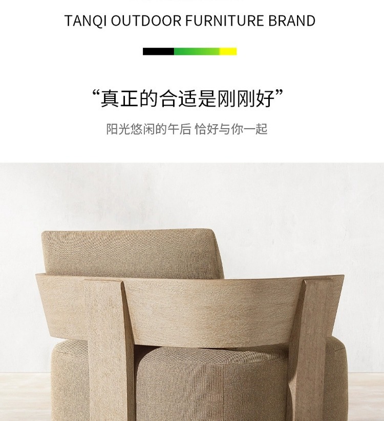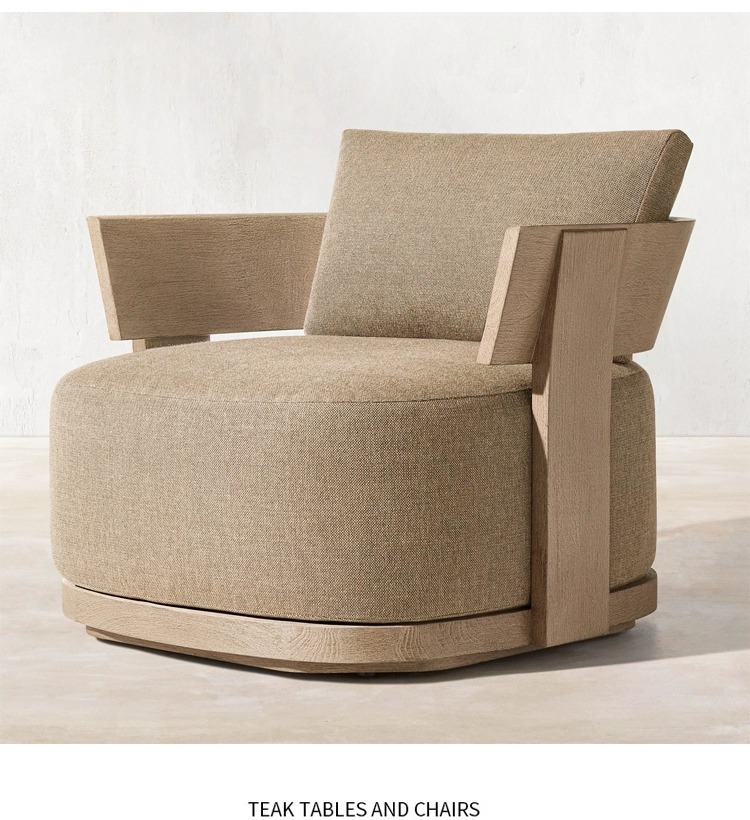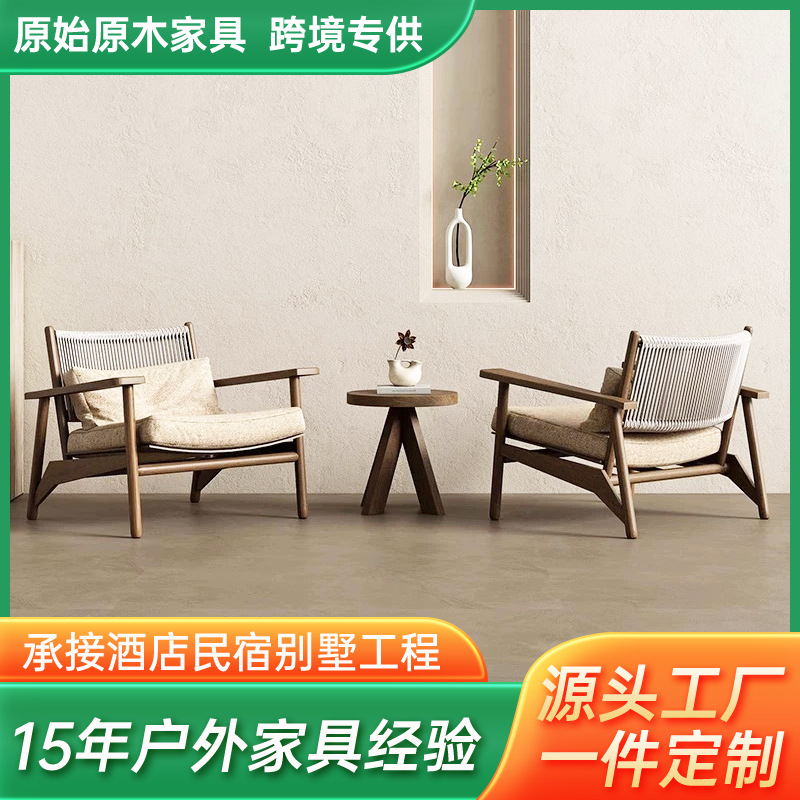 屋外チークチェアヴィラ中庭レジャーチェア屋外B&Bバルコニーシングルソファチェア日焼け止め無垢材椅子