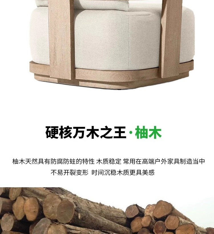 シンプルな屋外グレープフルーツソファー別荘ホテルガーデン家具庭園露天レジャー防水防裂実木ソファー