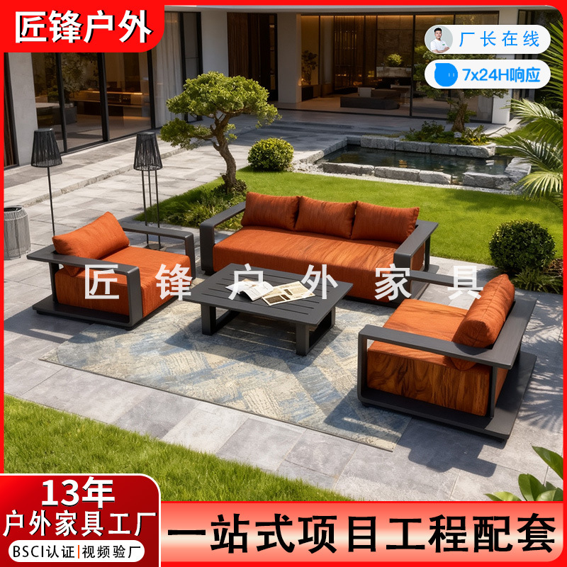 屋外無垢材ソファ屋外バルコニーホテル B&B ガーデンアルミ合金防水日焼け止め防食レジャー家具