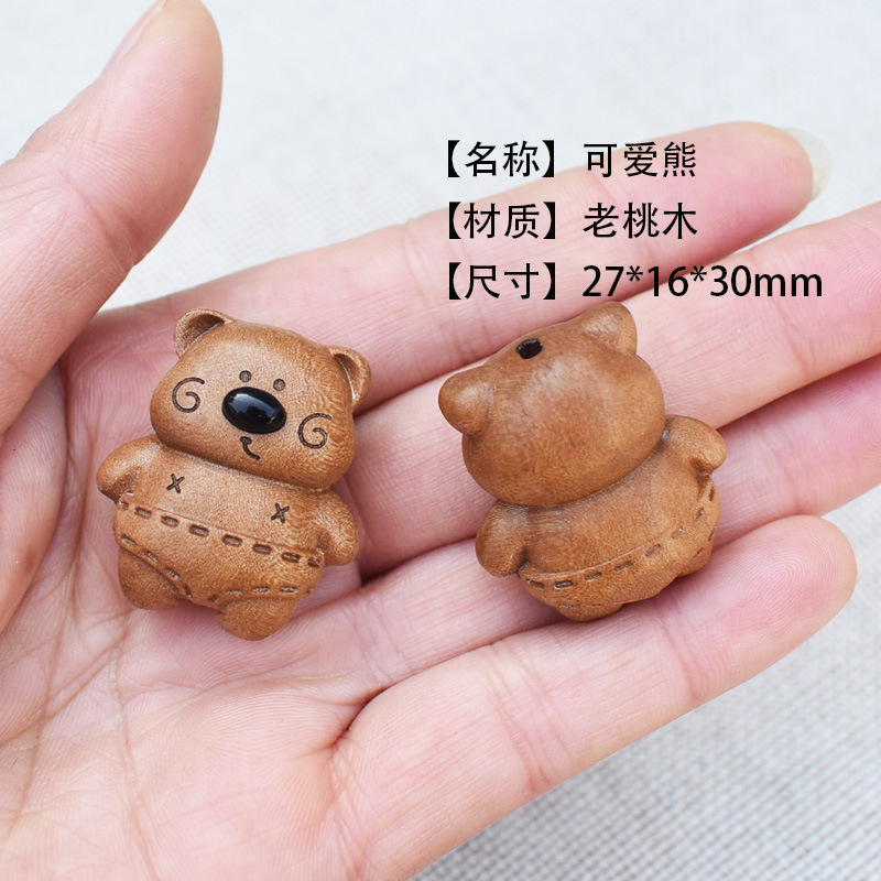 老桃木diy配件饰品吊坠钥匙扣咖啡豆文玩手串熊猫兔羊猪狗爱心