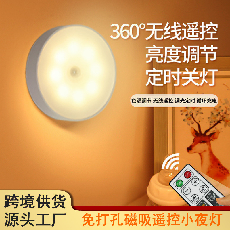 国境を越えた新型リモコン付き知能誘導小夜灯寝室ベッドの戸棚灯無線充電調光小夜灯