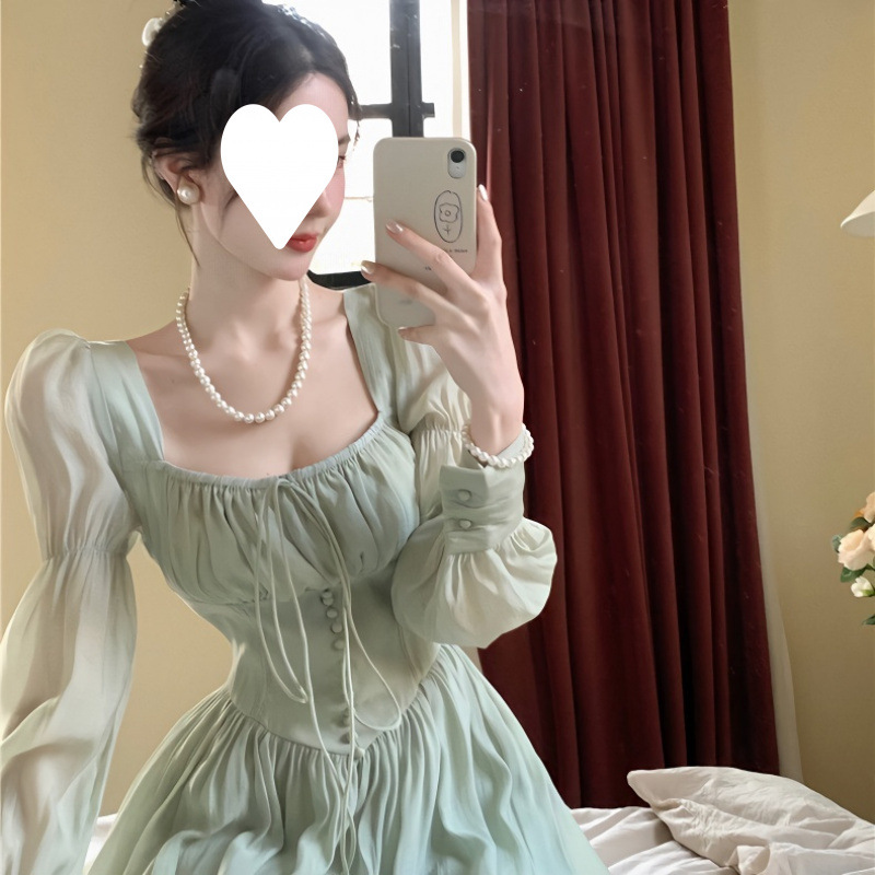 海辺ビーチリゾート風お姉様気質小ぶりフレッシュスカート春秋新作スクエアネックロングシフォン/ポリエステル(