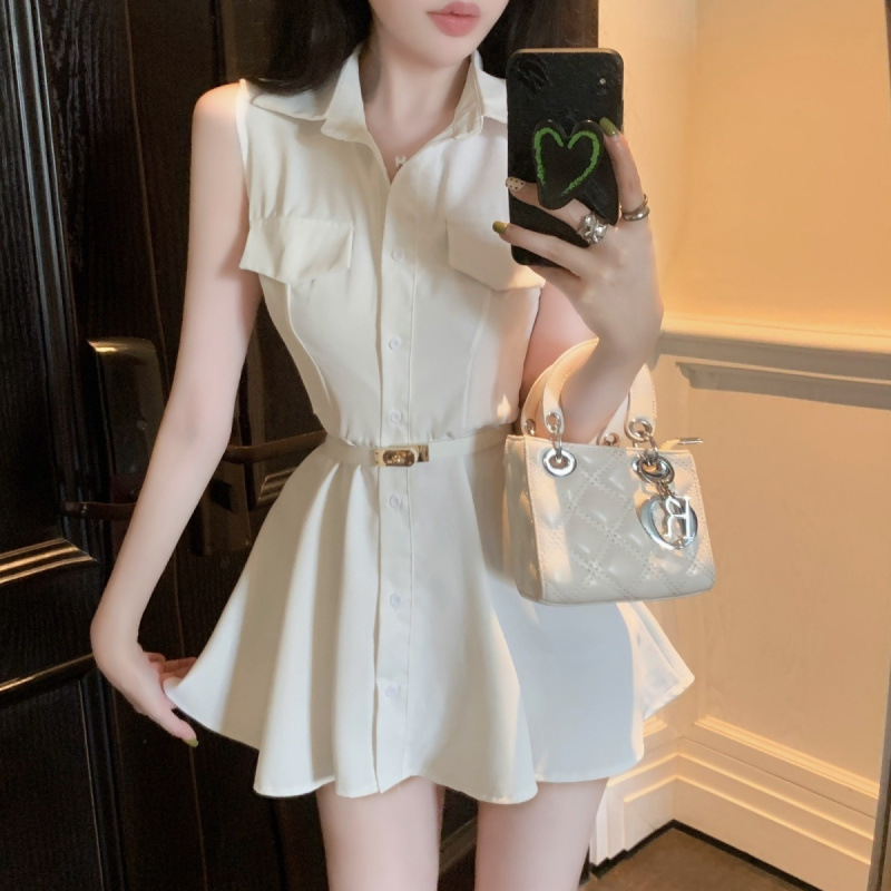 2025年夏フレンチカラーシニアスタイルデザインレギュラールーズスリムポロカラーベルト付きドレス