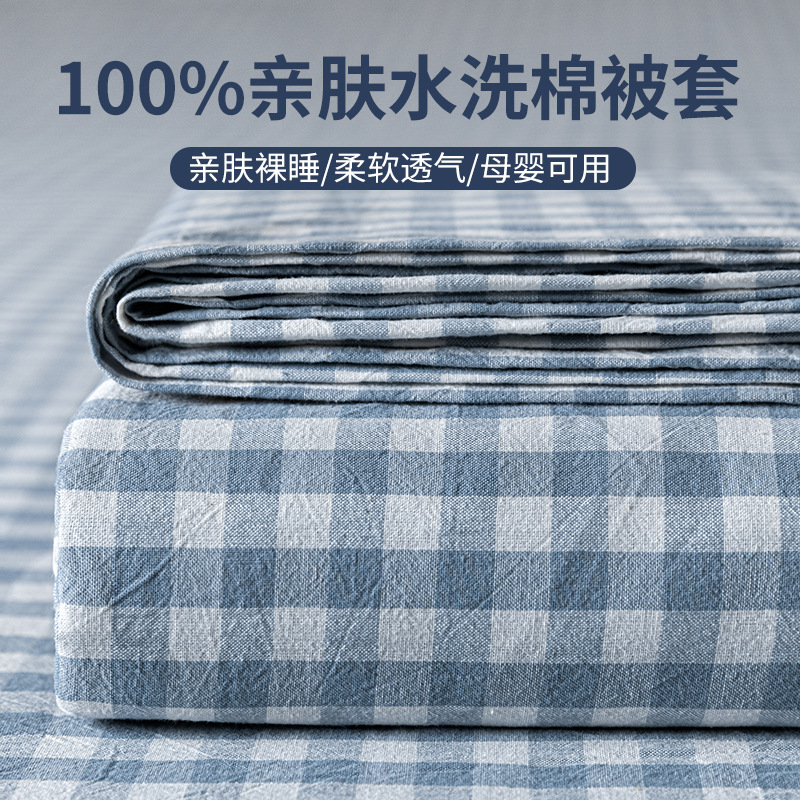 水洗棉被套单件2025新款被罩学生单人宿舍褥子套150x200cm三件套
