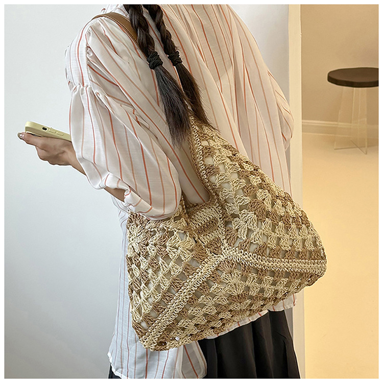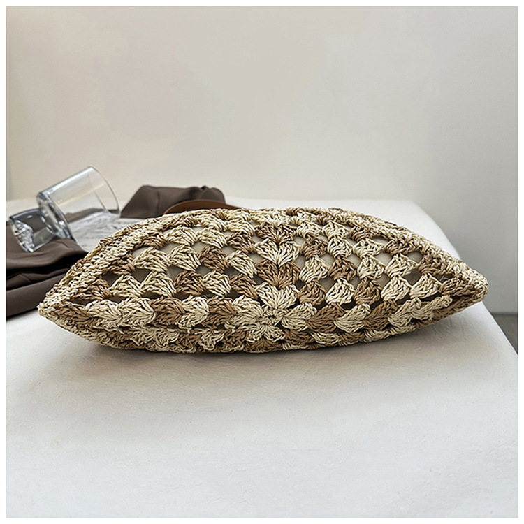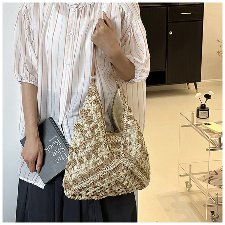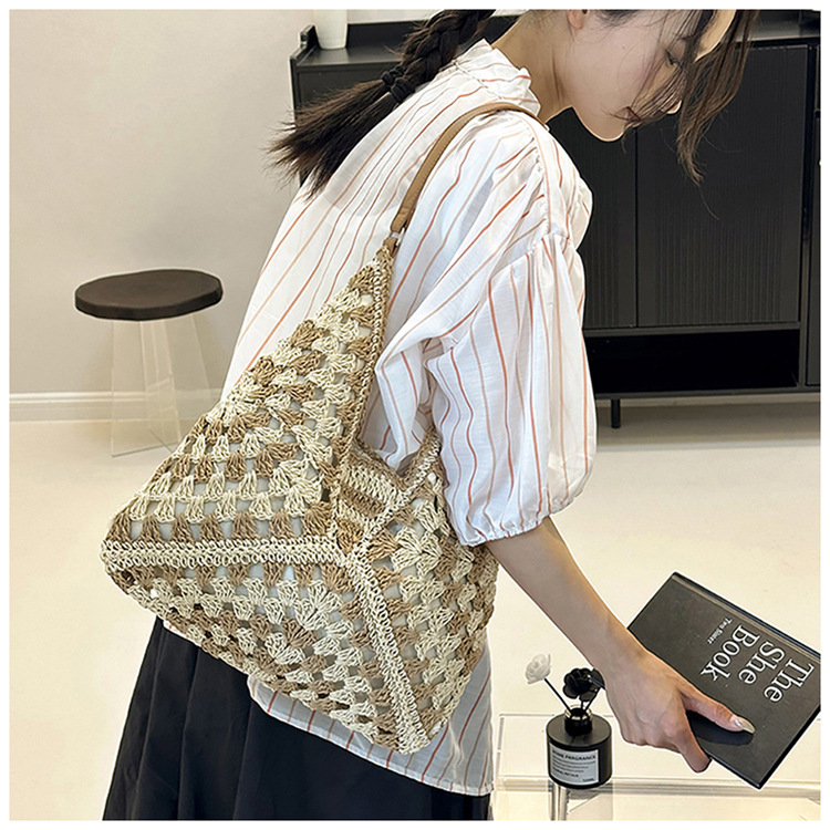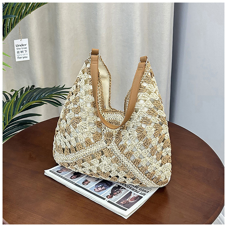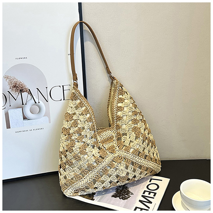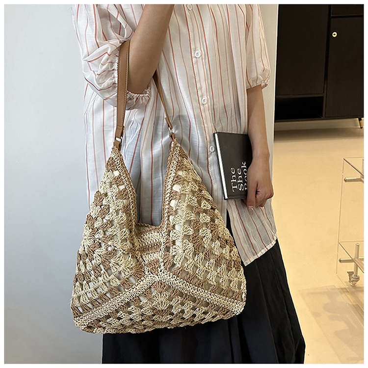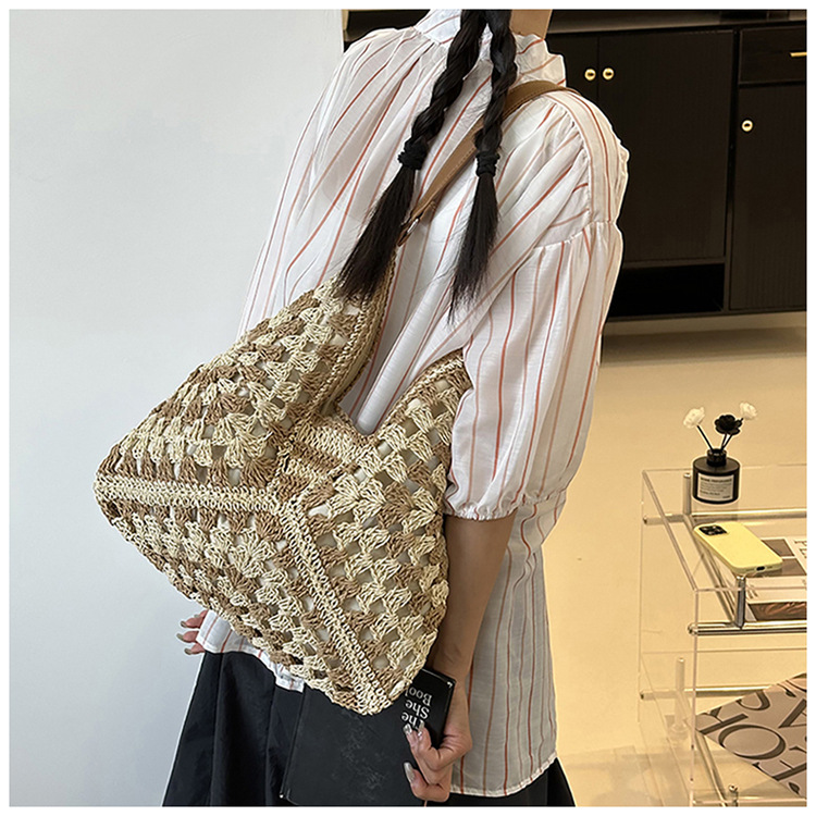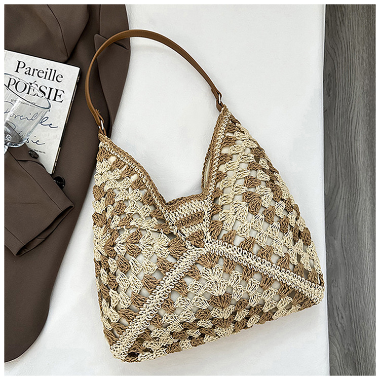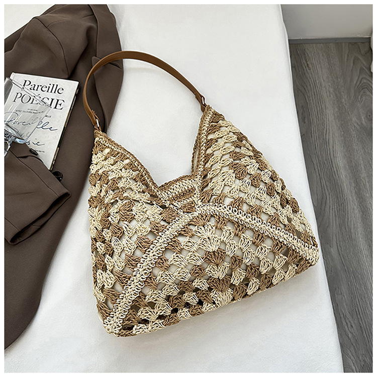 2025 新しいファッション文学織りショルダーバッグ怠惰なスタイルの大容量トートバッグレトロ中空コントラストカラー織り