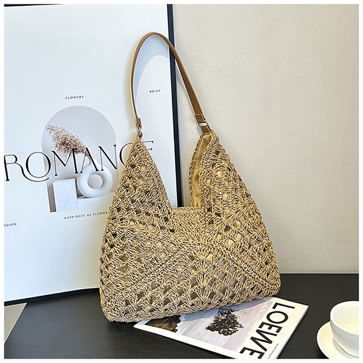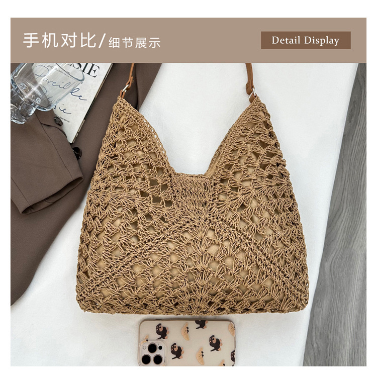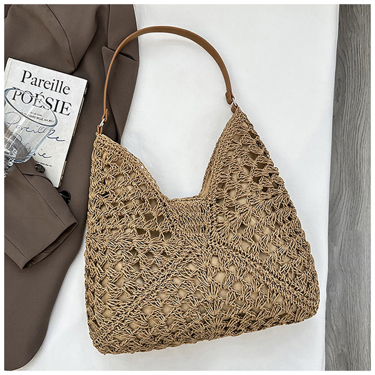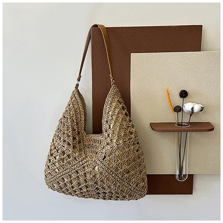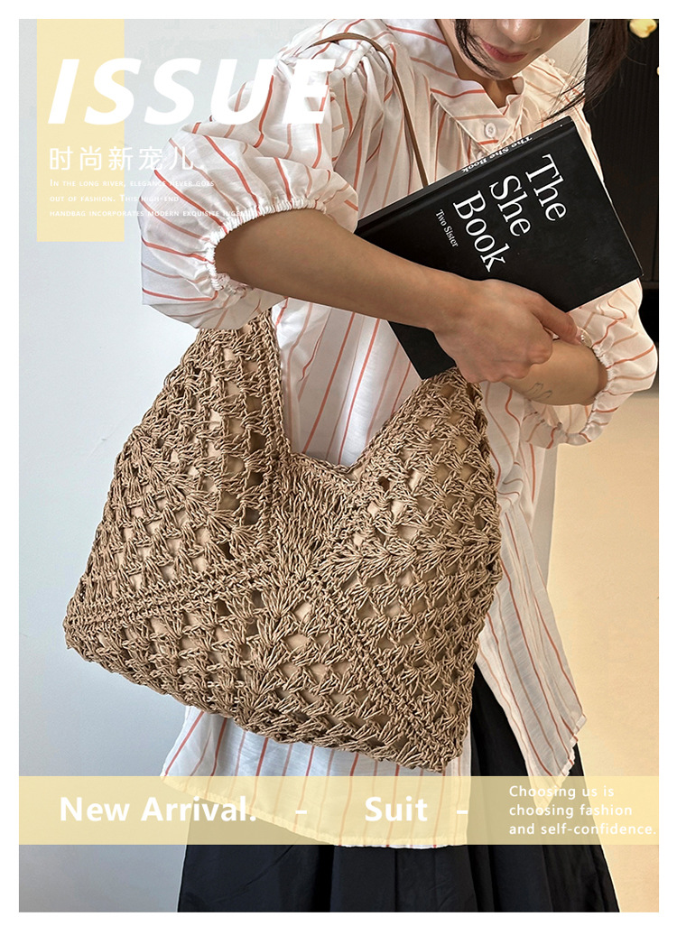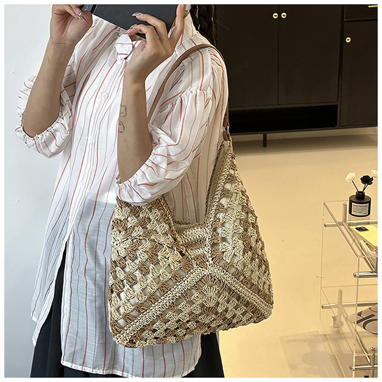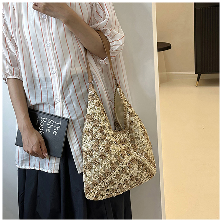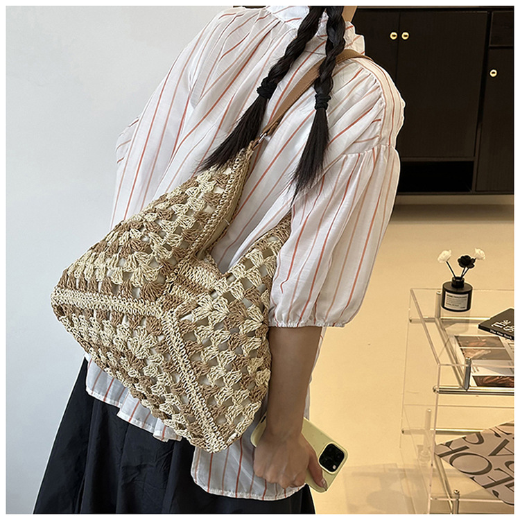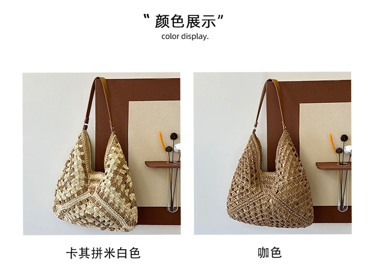 2025 新しいファッション文学織りショルダーバッグ怠惰なスタイルの大容量トートバッグレトロ中空コントラストカラー織り