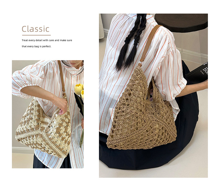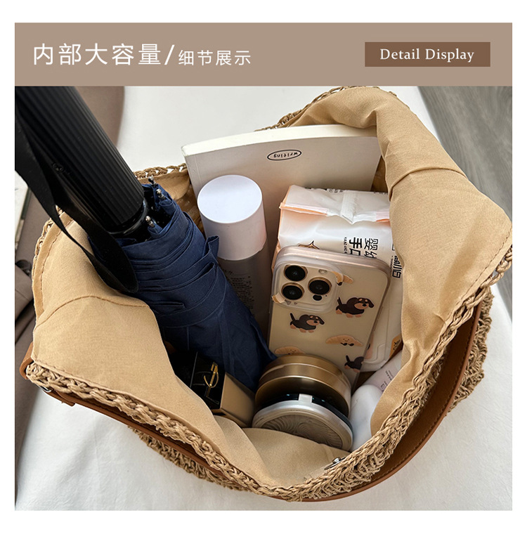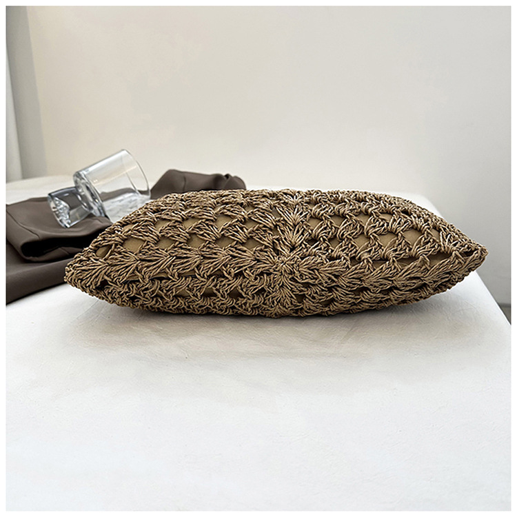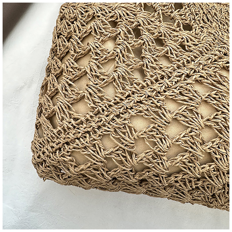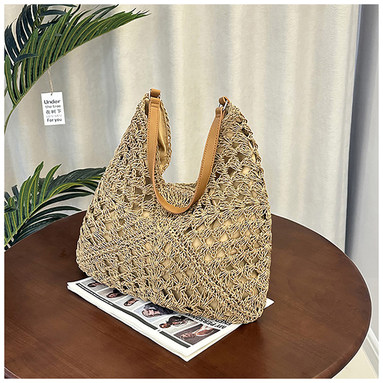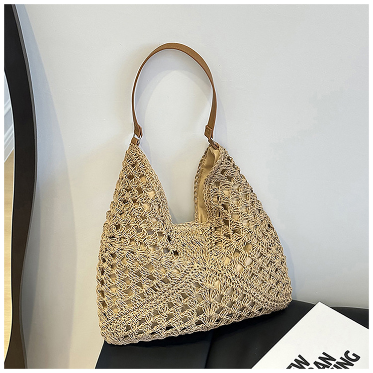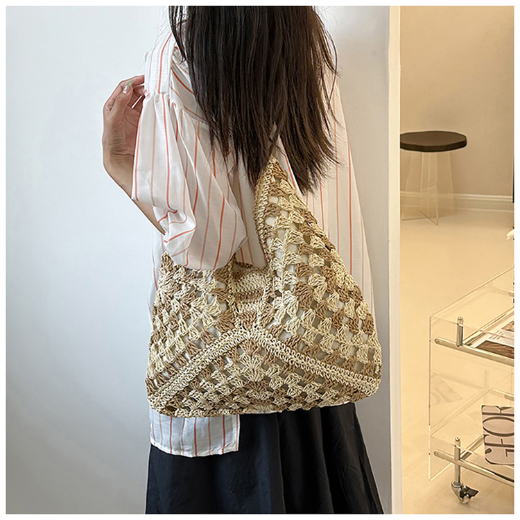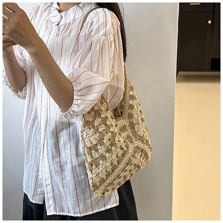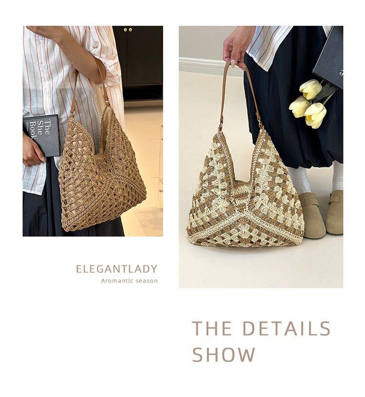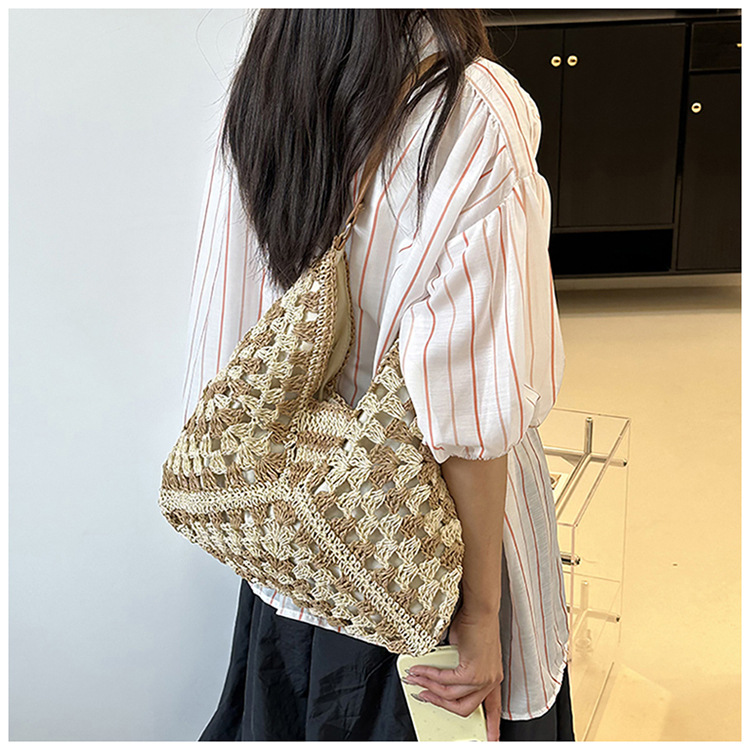 2025 新しいファッション文学織りショルダーバッグ怠惰なスタイルの大容量トートバッグレトロ中空コントラストカラー織り