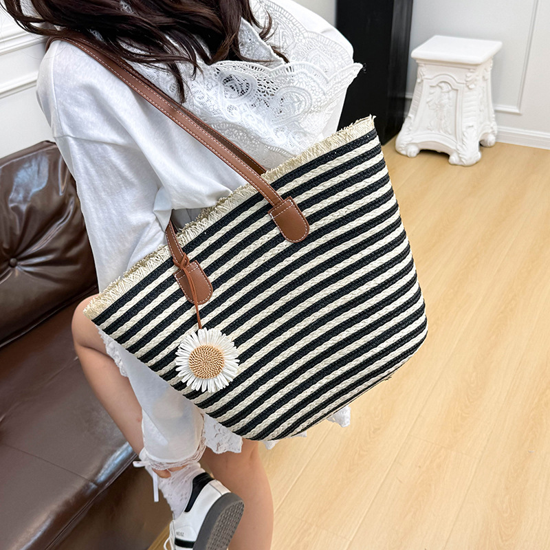 夏のファッション大容量わらバッグ新しいストライプパーソナライズされたトートバッグホリデースタイルカジュアル旅行織バッグ