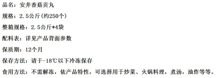 安井香菇贡丸斤 不包心肉丸子麻辣烫配菜家庭大包装火锅食材
